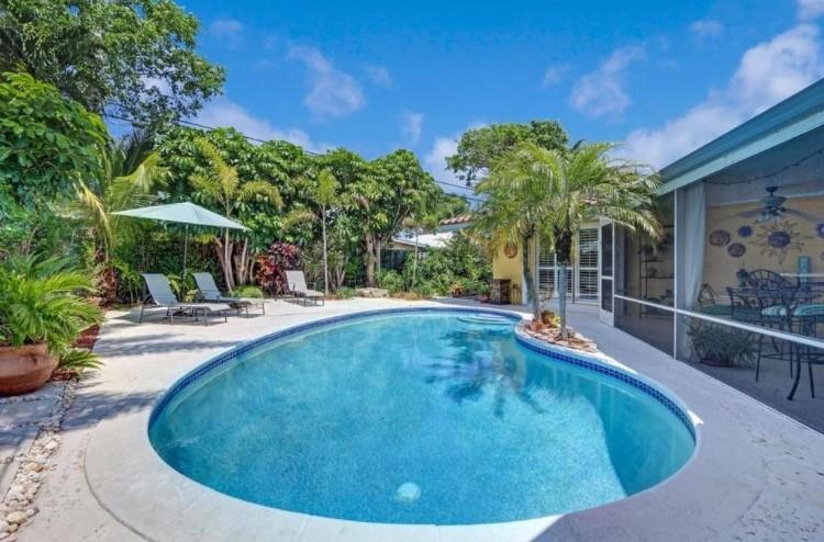 Tropical paradise in desirable Imperial Point. Beautifully, updated home w/ private backyard, pool & mature landscape setting. Move in ready! Home features tile throughout, master suite has beautiful pool view & access, custom closets, plantation shutters throughout, updated master bathroom with custom sea glass and shells tile and custom vanity w/ glass sink. Magnificent gourmet kitchen with "Blue Louise" granite from Brazil, Custom maple cabinets, Pantry, SS GE appliances, Gas Range, Wine Cooler, Kitchen Island with Murano Glass Lights, Breakfast area. Enjoy a Pool with lush landscaping, covered Patio perfect for entertaining. Family Room, Large bedrooms, wood floors, updated bathrooms. High Impact windows & doors. Excellent Public and Private Schools, Pine Crest, Westminster Academy.