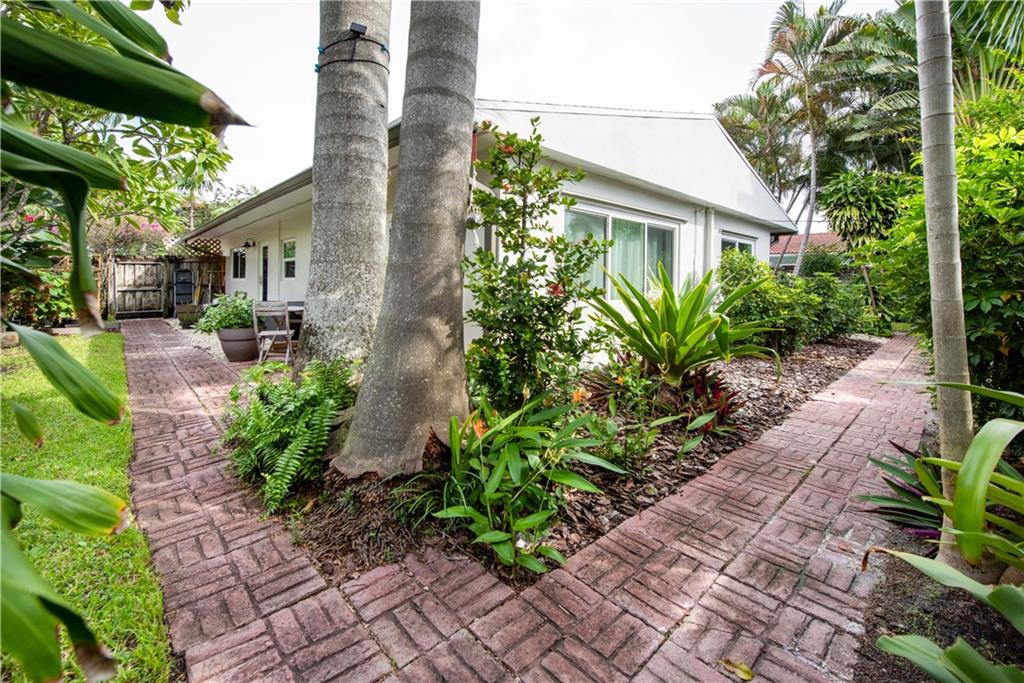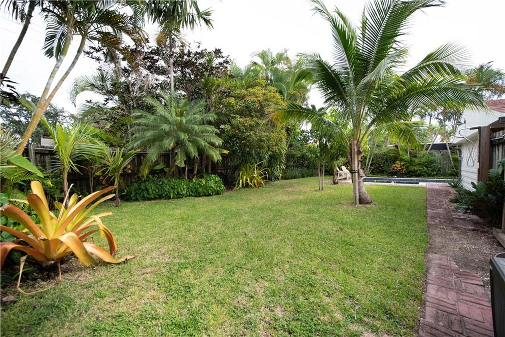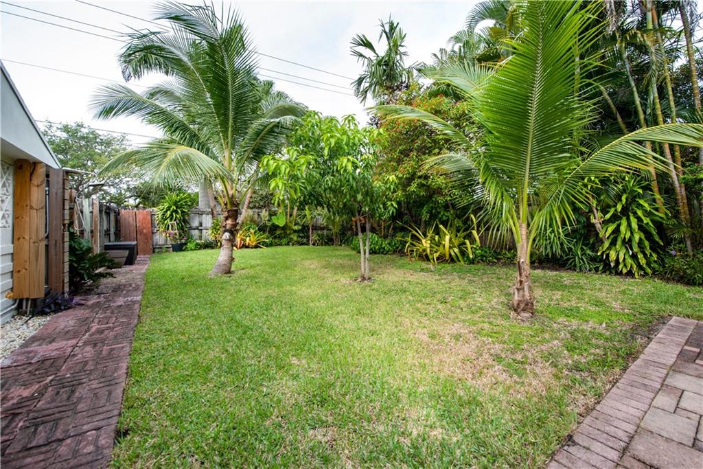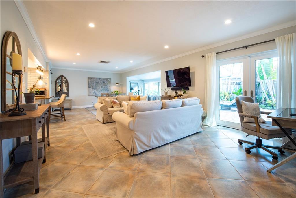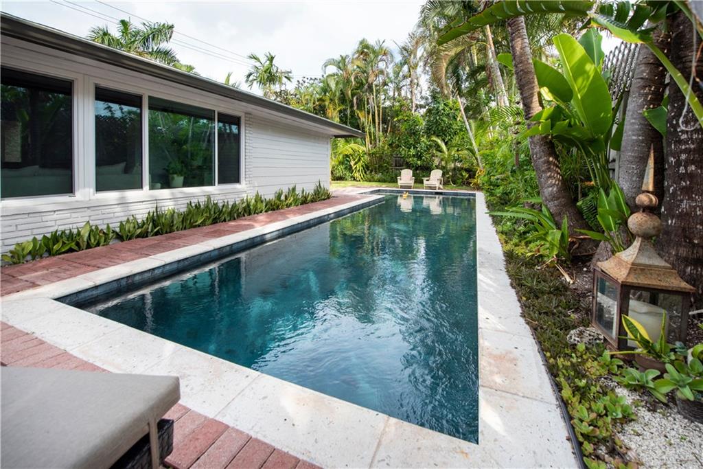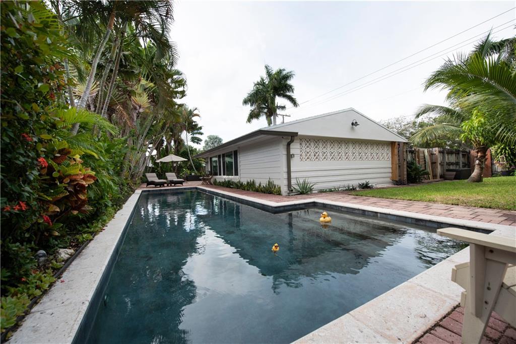 This 3/2 mid century ranch with an L shaped designer pool and garage has been stylishly renovated and is one of the most welcoming homes available on the market today - it is a tropical paradise in the middle of highly sought after Poinsettia Heights on a very private, fully fenced, oversized corner lot. This home offers lush gardens and large open green spaces, beautiful architectural details, impact doors and windows, open kitchen with new chef's appliances, separate pantry and laundry room, beautifully lit bedrooms with French doors out to the pool and private gardens, and an oversized great room terrific for entertaining. This home was originally a 3 bedroom but the wall for the 3rd bedroom was removed to create the oversized living room; easy to return to a three bedroom if needed!