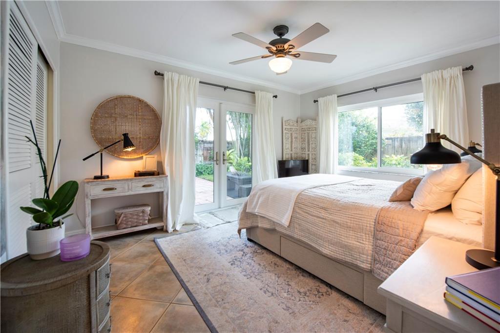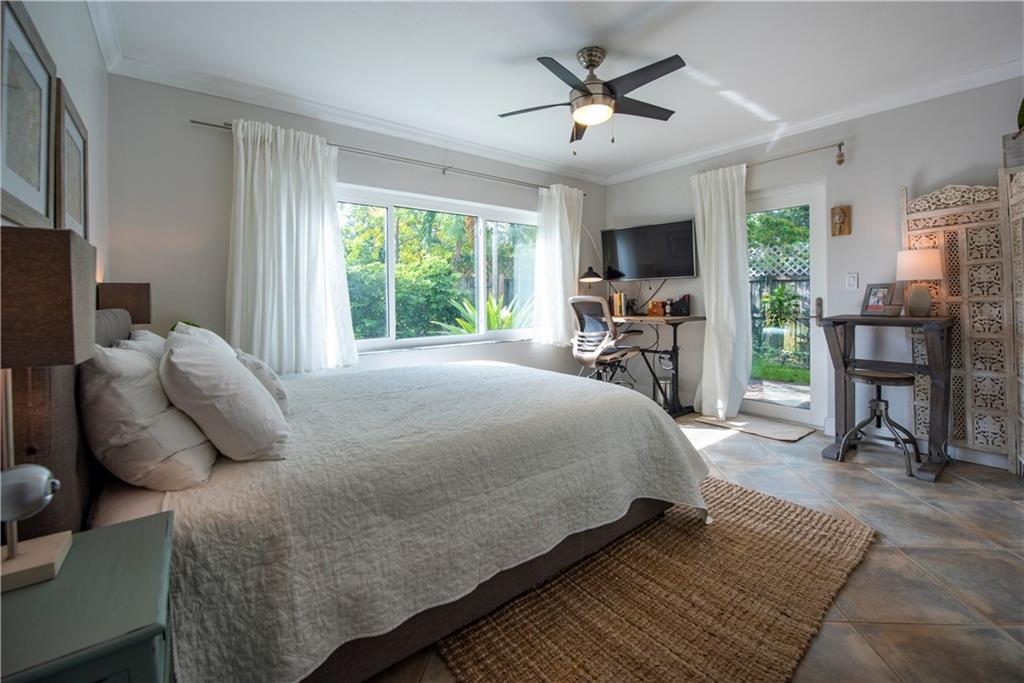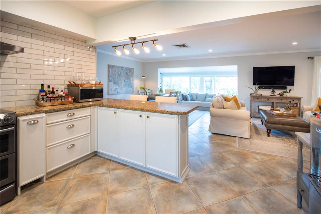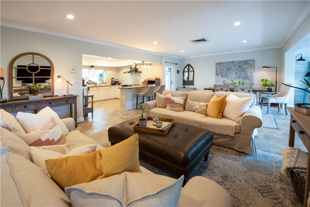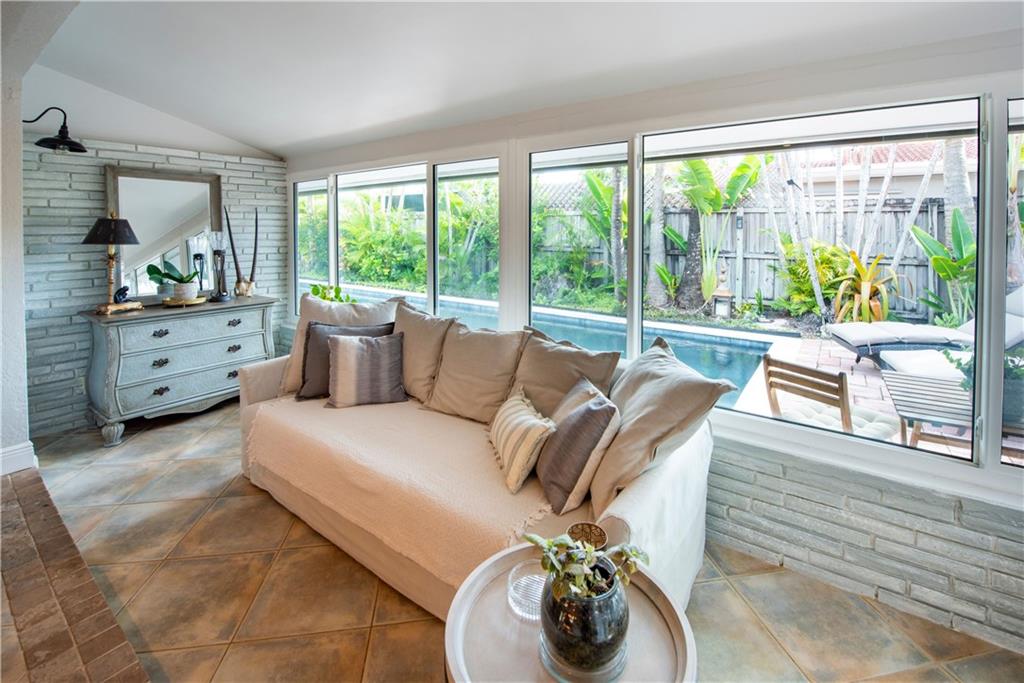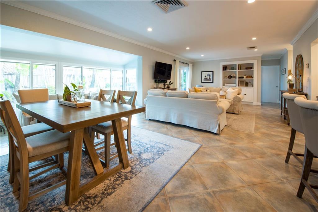 This 3/2 mid century ranch with an L shaped designer pool and garage has been stylishly renovated and is one of the most welcoming homes available on the market today - it is a tropical paradise in the middle of highly sought after Poinsettia Heights on a very private, fully fenced, oversized corner lot. This home offers lush gardens and large open green spaces, beautiful architectural details, impact doors and windows, open kitchen with new chef's appliances, separate pantry and laundry room, beautifully lit bedrooms with French doors out to the pool and private gardens, and an oversized great room terrific for entertaining. This home was originally a 3 bedroom but the wall for the 3rd bedroom was removed to create the oversized living room; easy to return to a three bedroom if needed!