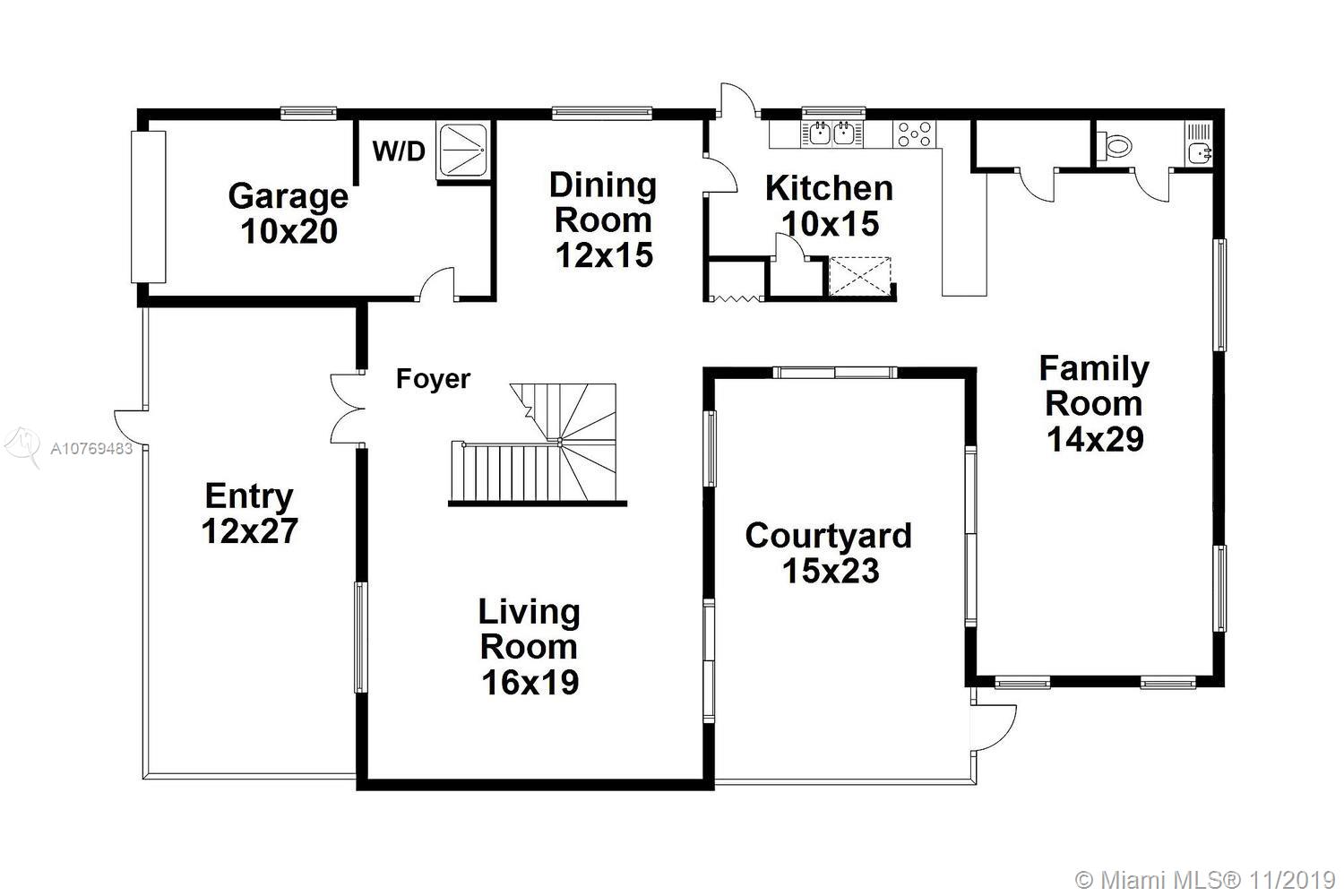 Handyman Special in Coral Gables. Great opportunity to make your own! This North Gables home with a 1 car garage has a great floorplan with amazing bones. The upstairs has 3 bedrooms and 2 full bathrooms with a wet bar area which allows you to store refreshments to avoid going downstairs. Downstairs has the 4th bedroom which was opened up for a TV/hangout area but can be easily converted back. Living spaces include a formal living and dining room, oversized family room that opens to a center courtyard. A large kitchen is currently being blocked by a wall which can be opened up creating the open floorplan which is so desirable. Original marble flooring combined with tile flooring will be found throughout the home. This is a great opportunity to purchase a fixer-upper and make it your own!