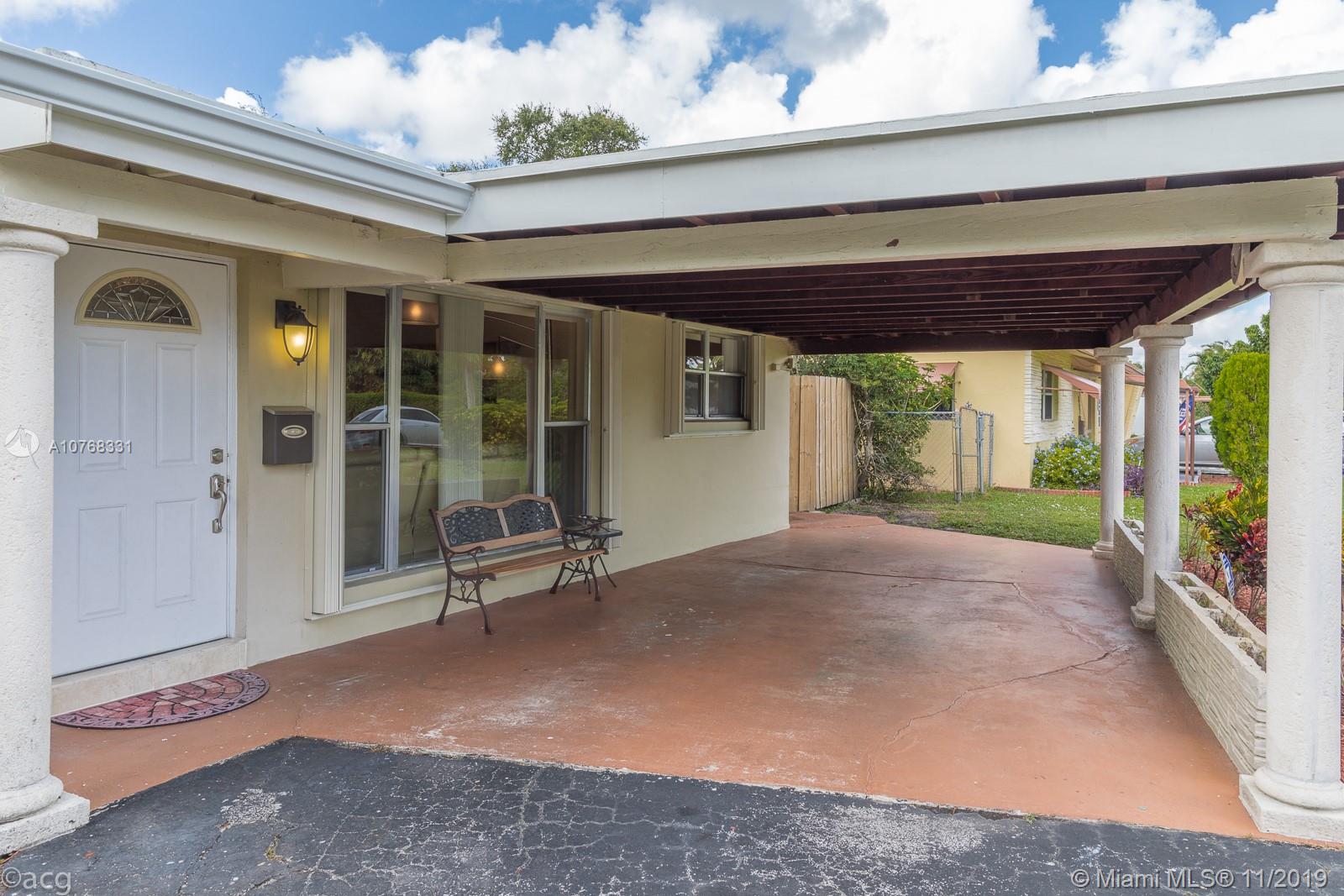 CHEERFUL SETTING FOR A HAPPY HOME! Casa Prus is a hidden Hollywood gem, is open, inviting, and welcoming with a beautiful curb appeal… YOU ARE REALLY GOING TO LOVE THIS ONE! Offering, split floor plan, 3 bedrooms, 2 bathrooms, remodeled kitchen, Den/office, laundry-utility room and carport. Great size kitchen remodeled in 2016 with a traditional look, granite counters and stainless steel appliances. Storm ready with accordion hurricane shutters installed in 2018. In addition, 16 inch ceramic tile, 2018 washer and dryer, tool shed, circular driveway, open porch, patio and room for pool. The location is GREAT, just minutes to the HOLLYWOOD BEACH and NEW HARD ROCK GUITAR hotel and walking distance to best area shopping center. FAMOUS LAST WORDS!! GOING, GOING, GONE.