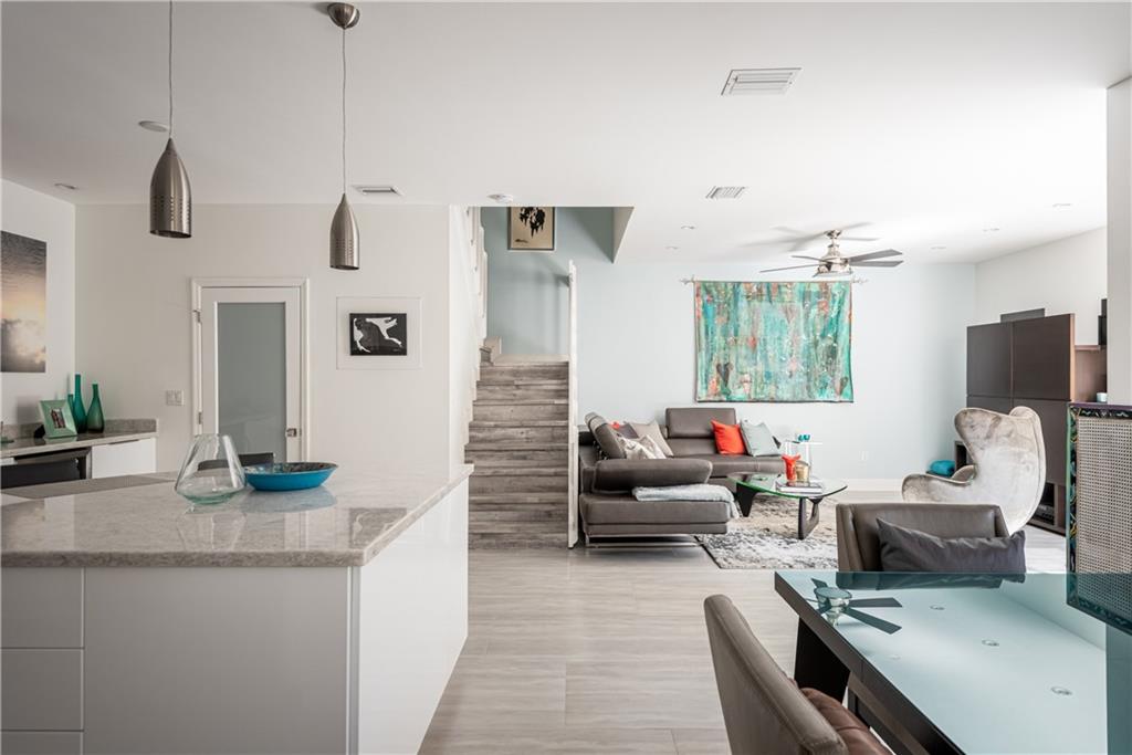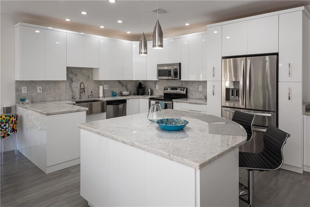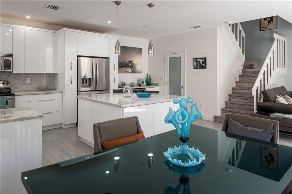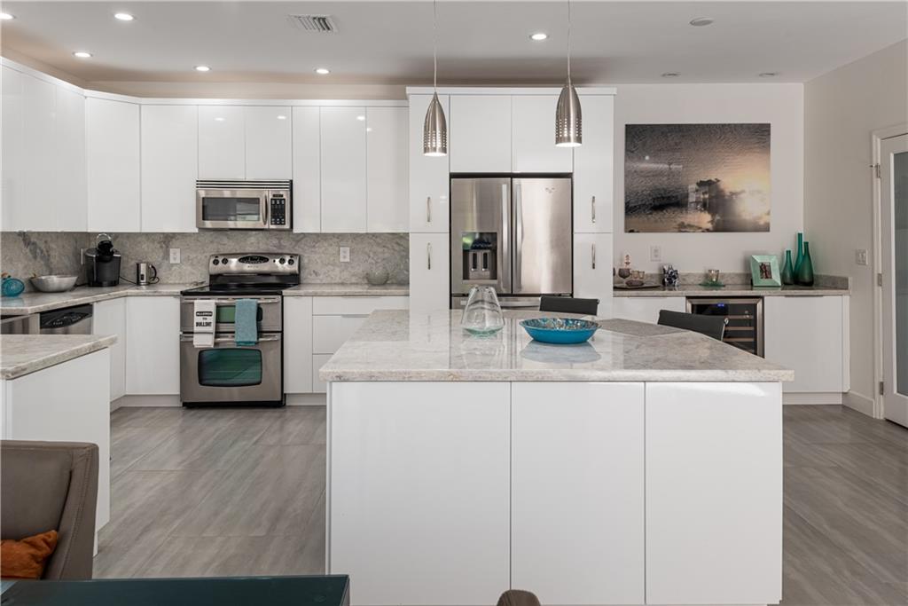 COMPLETELY REMODELED 3/2.5 TH WITH STUNNING NEW ENLARGED KITCHEN THAT FEATURES QUARTZ COUNTER TOPS, STAINLESS STEEL APPLIANCES, LARGE ISLAND THAT SEATS 6 COMFORTABLY, BUILT IN WINE COOLER, AND NEW WHITE CABINETS WITH PULL OUTS AND SELF CLOSING DRAWS. RECESSED LED LIGHTING THROUGHOUT THE KITCHEN AREA. BEAUTIFUL PORCELAIN FLOORS DOWNSTAIRS AND TILE/WOOD UPSTAIRS. NO CARPET. 1 CAR GARAGE . MASTER BEDROOM OFFERS A LARGE WALK IN CLOSET, SCREEN IN BALCONY IN THE GUEST BEDROOM, AND HURRICANE ACCORDION SHUTTERS THROUGHOUT. POPCORN CEILINGS HAVE BEEN REMOVED AND NOW SMOOTH. DESIGNER BLINDS. PRIVATE COURTYARD WONDERFUL FOR ENTERTAINING, RELAXING, OR BBQ'S. CLOSE TO GUEST PARKING. GUARD GATED COMMUNITY 24/7 JUST 1 MILE FROM BEACH. AMENITIES INCL SWIM, TENNIS, GYM, CLUBHOUSE, BASKETBALL, & MORE