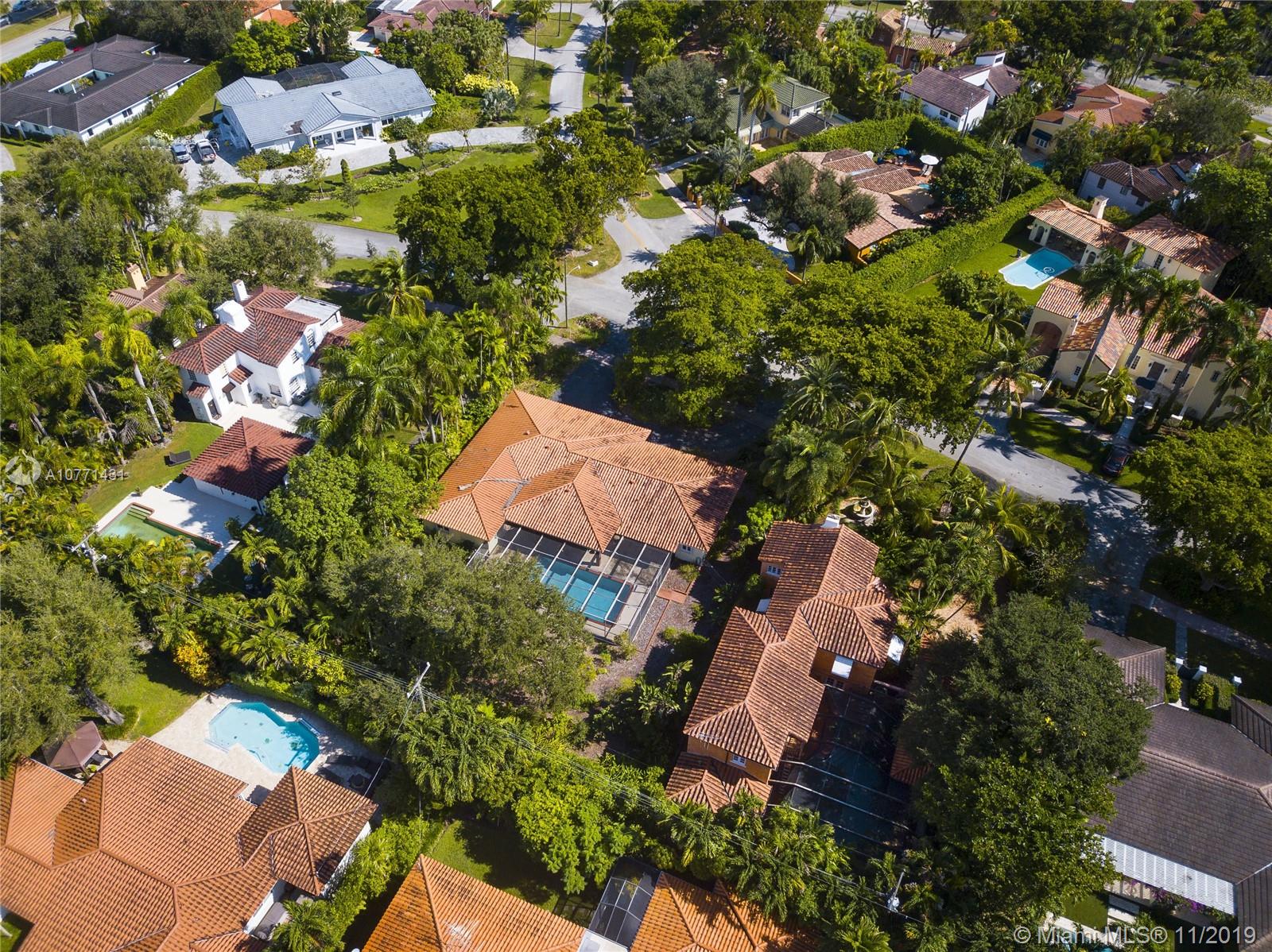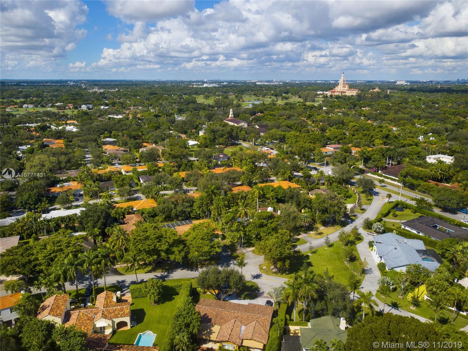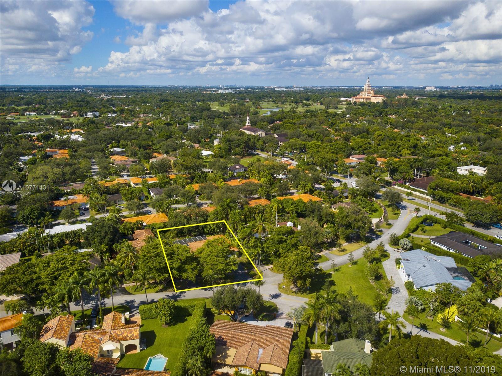 Situated on a 15,500 sq ft lot on one of the prettiest streets & locations in the Gables amidst the Italian Village. Well cared for, this property is being sold by the estate for the first time in many years. It has a wonderful layout w/ foyer, grand living spaces including frml liv rm w/bay window, frml dining rm overlooking back patio & pool, gracious family rm & oversized kitc w/ gas stove. The 4 bdrms are divided w/ 3 on one side & a 4th privately off laundry rm & kit. All of these rooms are generous & could be used for family. The back is beautiful w/ large covered patio, built in bar area, screened in pool & oversized yard w/ wonderful space. 2 car gar, lrg laundry rm, shutters throughout. This home offers unique opportunity to renovate a well cared for home or create your dream.