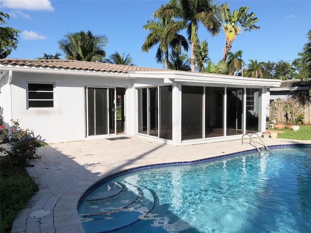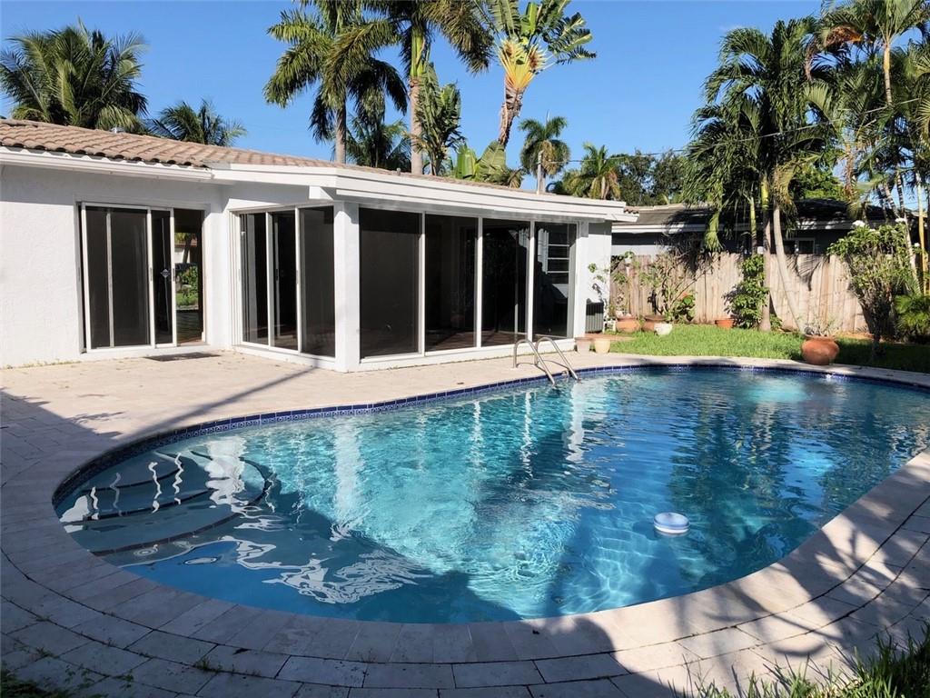 The best value on the market and in the heart of the highly desirable North Ridge section of Poinsettia Heights, this 3 bedroom 2 bath pool home is directly across the street from very valuable Middle River front homes and one half block from public access to the River, perfect for canoes and kayaks. This home is priced as well as it is to allow the buyer to make cosmetic changes like impact windows but the house itself is in excellent condition. It has an open floor plan with two living rooms, one of which is completely glass and overlooks the pool, a separate dining room, and three spacious bedrooms with two baths, one of which has been recently renovated. The neighborhood is the finest - 1 mile to Wilton Drive, 2 miles to the ocean, walk to Whole Foods, Pottery Barn, and restaurants!