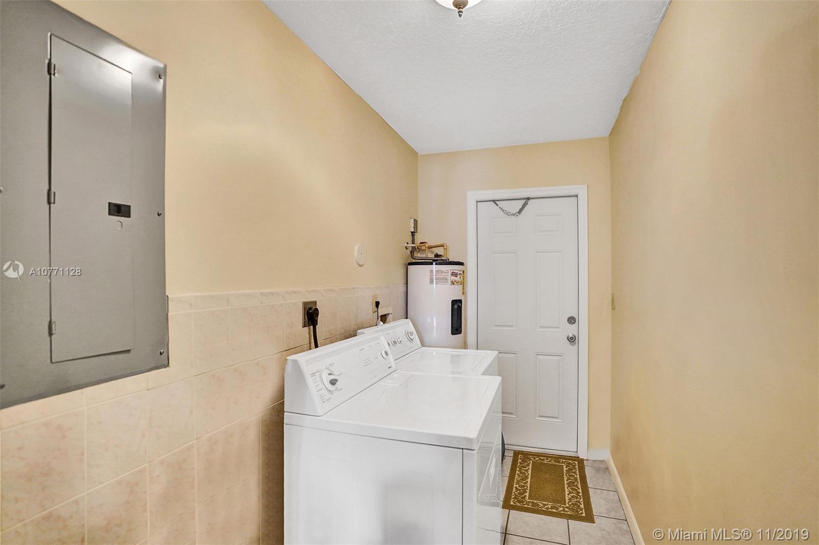 This fantastic single family home in Hollywood Park features high impact windows, 3 bedrooms 2 bathrooms, 2 driveways . One fitting up to 4 cars and the other is 40' deep, large enough for an RV or a boat. Home has ceramic tiles throughout, kitchen with brand new stainless steel appliances. Great Layout with formal living room , separate dining , family room & laundry room. Master & guest bedroom have a walk in closet. Yard has tropical fruit trees , large shed for storage and fencing around the home. Home is built 18" higher from ground. Roof 2001, PVC pipes, No Association. Make this your next home!!!