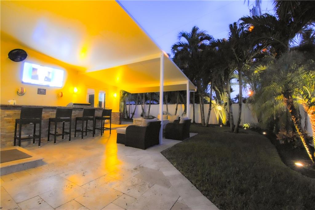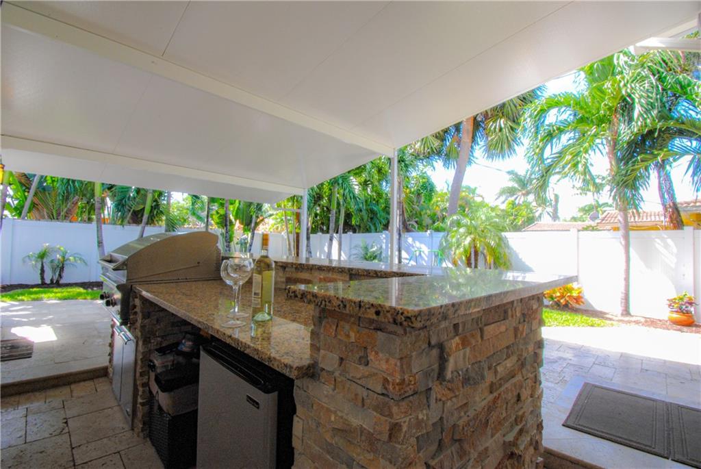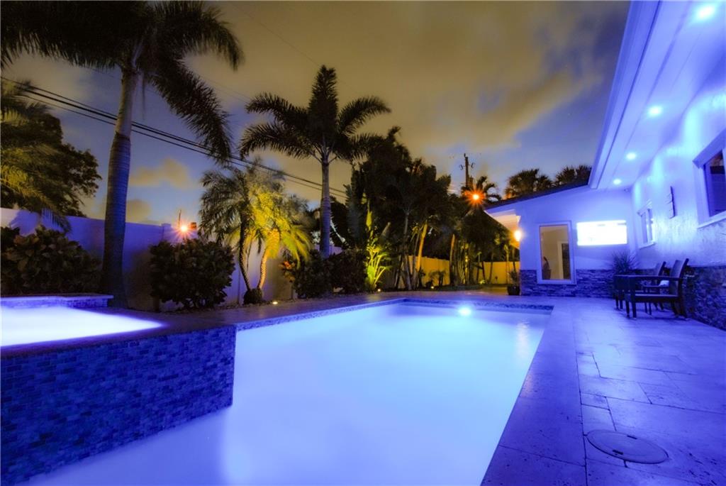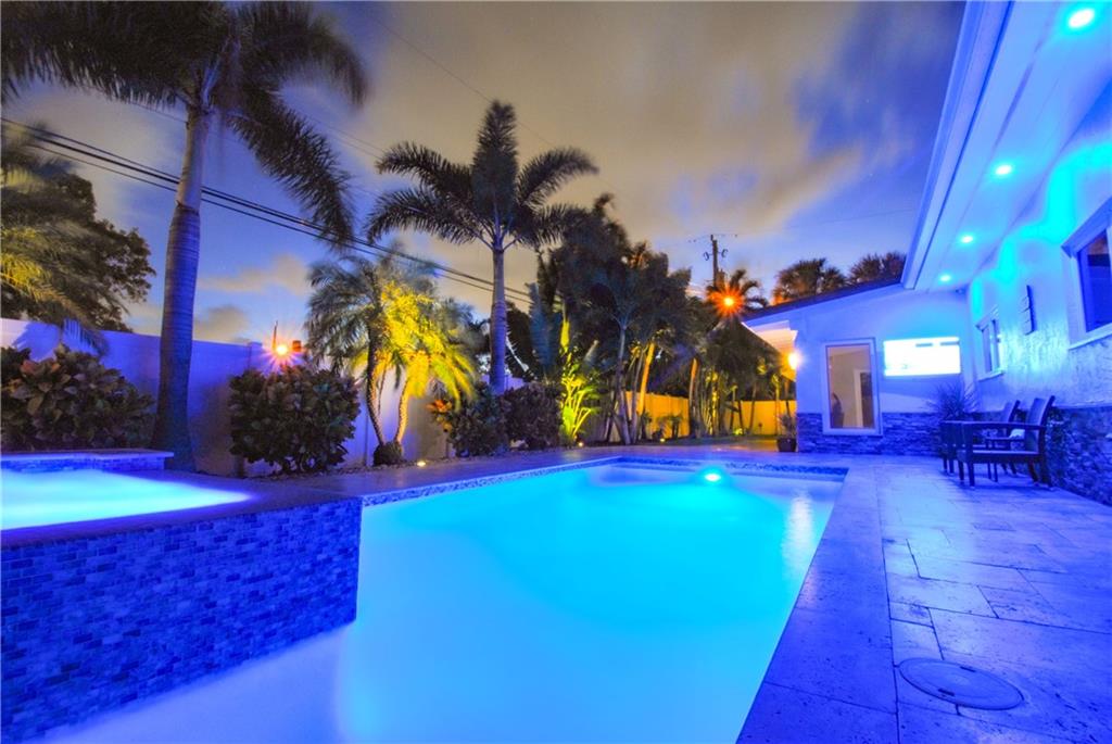 Total New Renovation in most desirable Coral Ridge neighborhood. Fabulous 3BR/2BA/,2 Car garage with complete privacy. Vaulted,Open beam ceilings that add charm and pizzazz to the Great room which includes a new modern split rock fireplace. All new Impact windows and doors w/sun blocking shades Enjoy a Huge master Master bath w/soaking tub. A total WOW kitchen w/island & best Kitchen Aid appliances. The home is behind a stately masonry wall with custom decorative gates and travertine walkway leading to the double glass entryway. Landscaping includes Italian Cypresses and over 70 palm trees. New 19 x 27' covered outdoor granite kitchen/Bar/Fire-pit. Salt waterPool/Spa, New underground sewer/water lines/electrical/cable to street. Bose system inside & out, Up lit landscaping/with Security