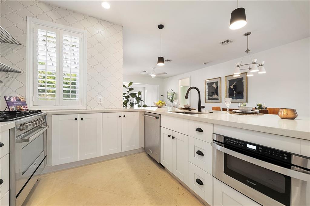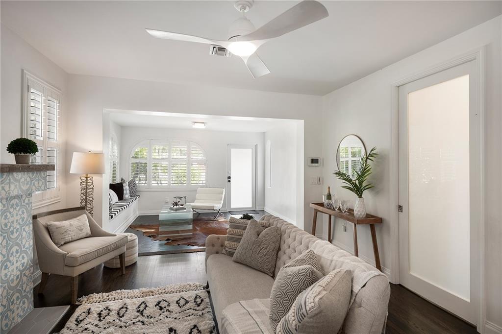 Gorgeous renovation of 1931 classic 3/2 cottage and 1/1 guest house. High ceilings, wooden floors through out main living and bedrooms. Open living, dining & kitchen areas. Kitchen has gas range, island seating and tons of custom cabinetry. Master Bedroom with en-suite marble bath completes the inside. Fabulous entertainer's back yard including turf lawn, covered terraced patio and outdoor kitchen which joins the 1/1 guest house with kitchenette. Unique design details abound!