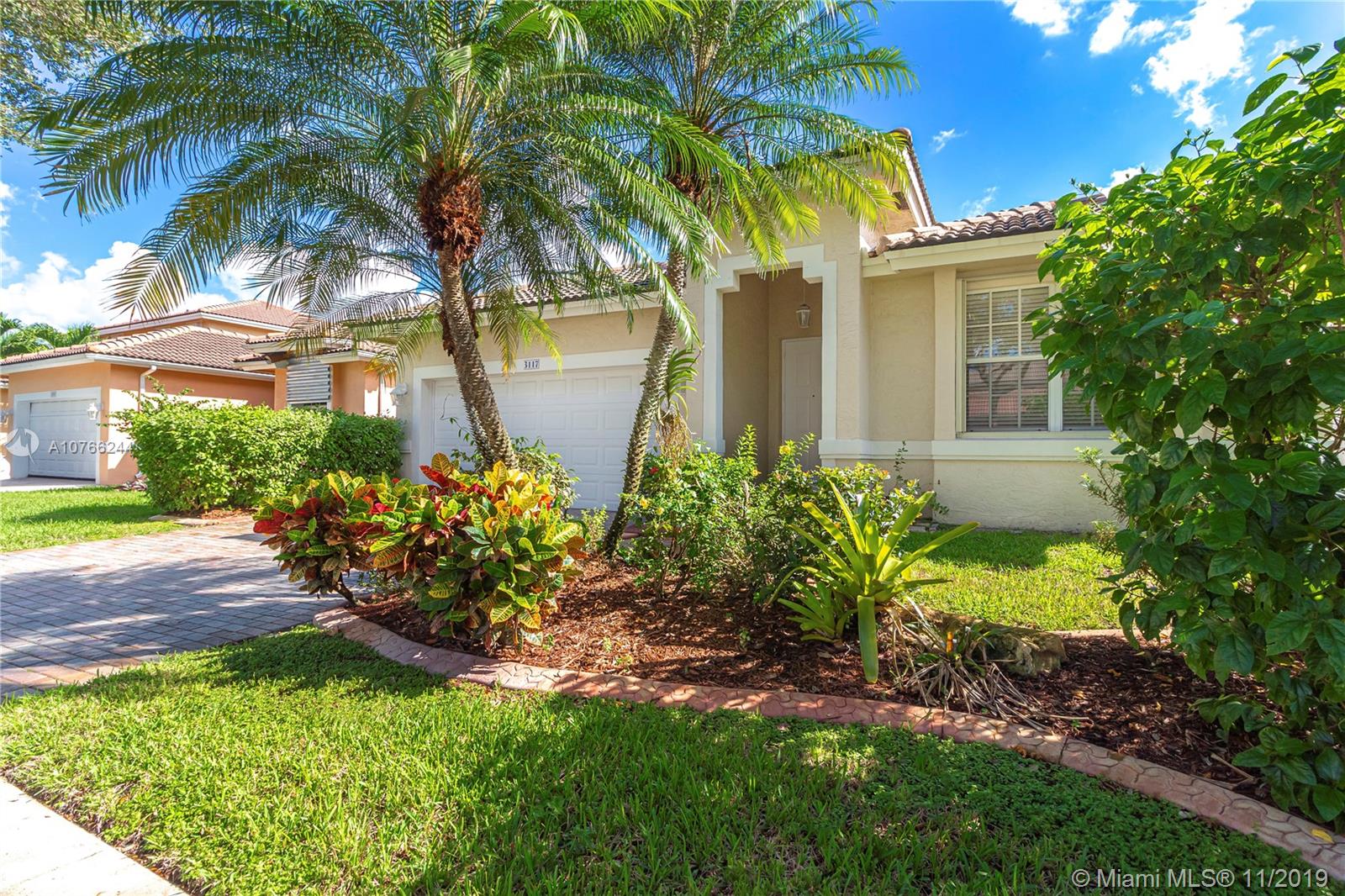West Miramar, Monarch Lakes gated community of Vineyards. One story model home with 4 full bedrooms and 2 full baths. Screened in and Covered back patio area. Fenced in yard with total privacy. Entrance leads to Formal Living and Dining rooms. Great Room boasts an updated open kitchen with granite counters, breakfast nook and Family Room. Master en-suite features double vanities and a soaking tub and separate shower, also leads to the back patio area. Updated second bath. Excellent Schools. Near all major highways. 30 mins to downtowns and FTL and MIA. Local shopping and dining. Community Parks.