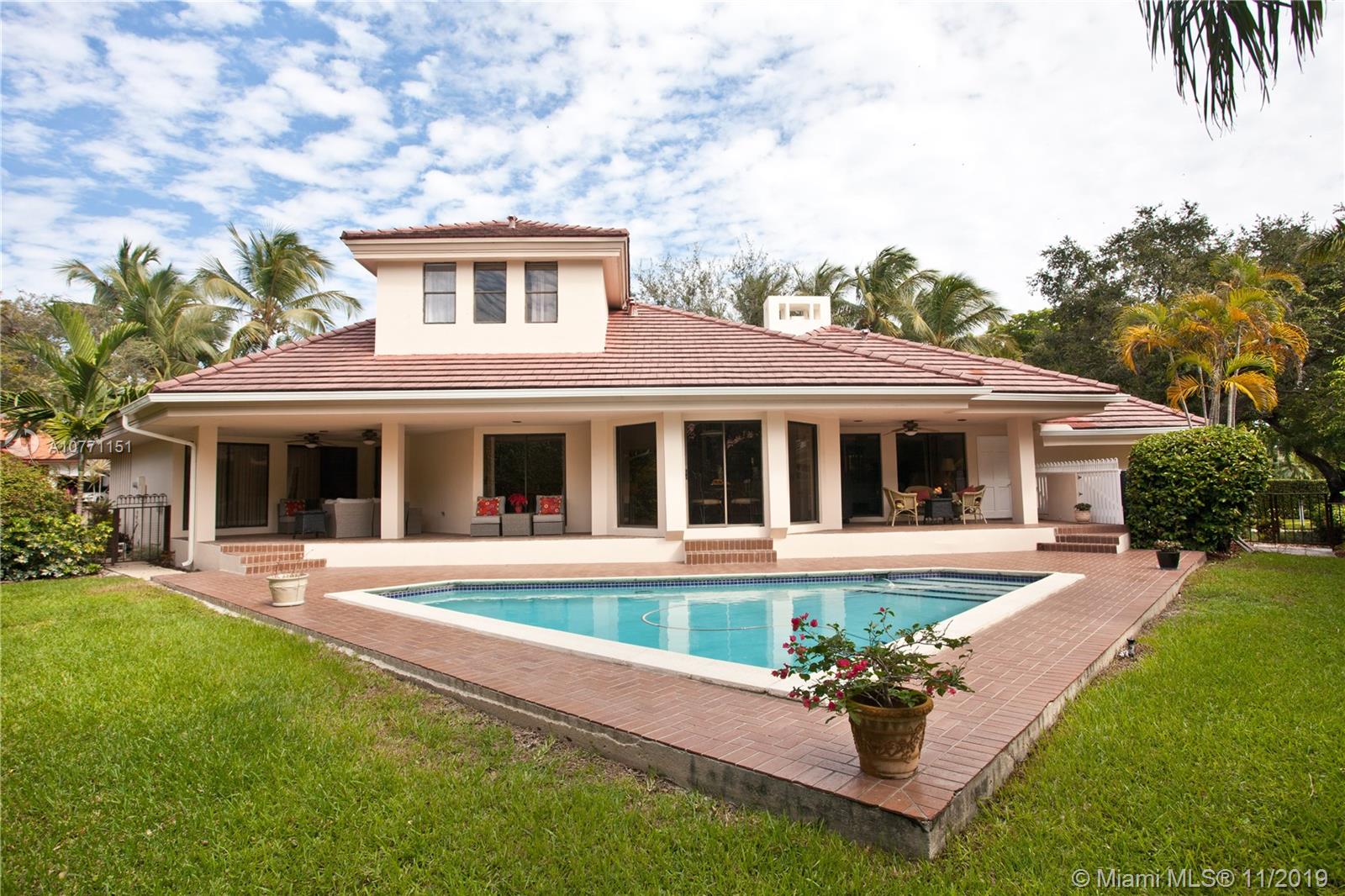 This light-filled one-story home located in gated, 24/7 security of Islands of Cocoplum, is perfect to downsize. Marble floors throughout, except for the guest bedroom upstairs, covered terraces overlooking the cozy patio and pool, circular driveway and 2-car garage. Beautiful modern eat-in kitchen and bathrooms. Enjoy island of Cocoplum amenities: lighted tennis courts, volleyball and basketball courts, spa-like ambiance, lap pool & hot-tub, club house, gym and more.