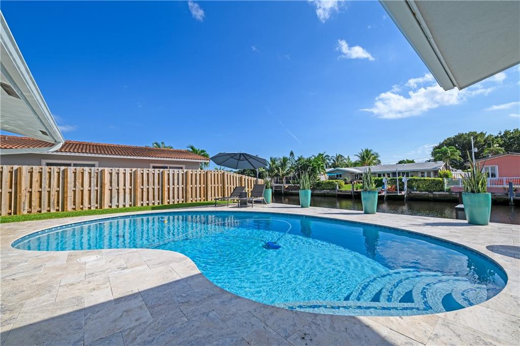 COMPLETELY RENOVATED: New Roof(2018),Pool completely redone to include New Heater & Pentair Vac,& Ambient, Sealed Travertine Patio, All Modern Fixtures, 2 Hurricane Impact gar keypad doors, Fenced Yard,75 Ft WF, New Hurricane Impact Front Door with Travertine Entryway. All windows Hurricane Impact-Kitchen with quartz waterfall and beautiful Modern Cabinetry. New SS Appliances , New W/D, Gorgeous Landscaping, Spectacular view of water and pool. New Bathrooms to include all faucets, cabinets, valves, porcelain, lighting and custom closets in every room. ALL PLUMBING HAS BEEN REPLACED-PVC PIPING THROUGHOUT WITH PERMITS. New Bandeaux Blinds with remotes. 1 year old Neptune 10,000 lb Elevator Boat Lift. Porcelain throughout,, USB Port Outlets. DO NOT MISS THIS-GORGEOUS! (the FINEST finishes)