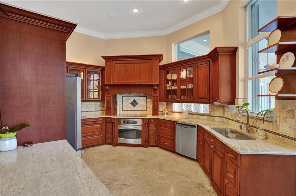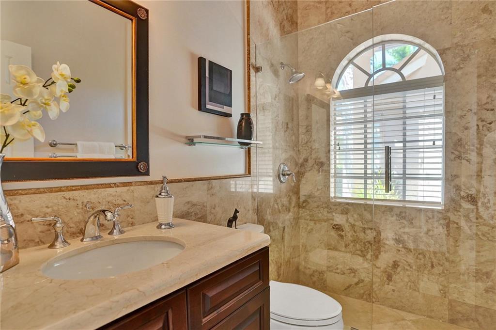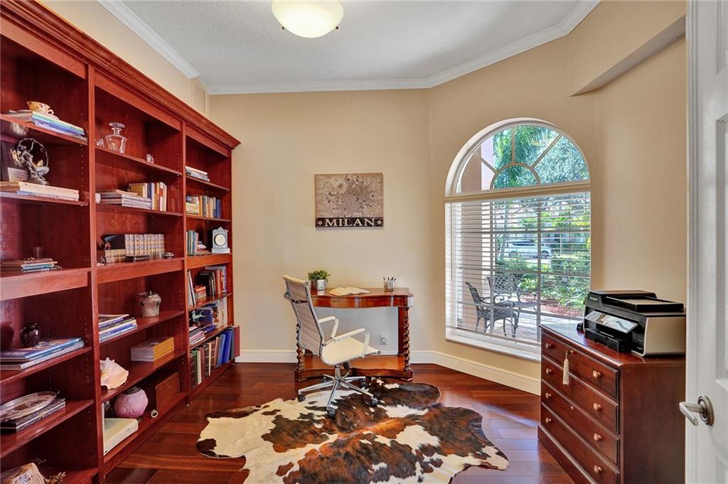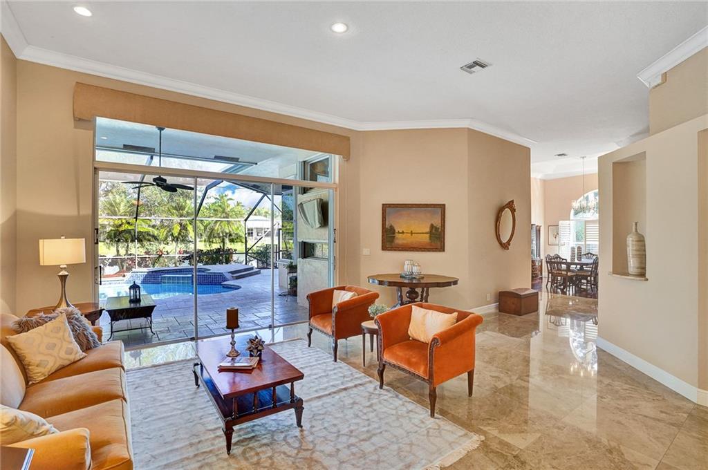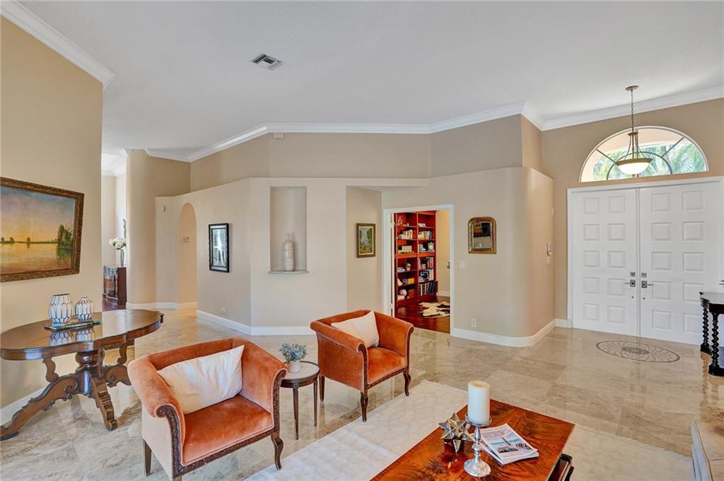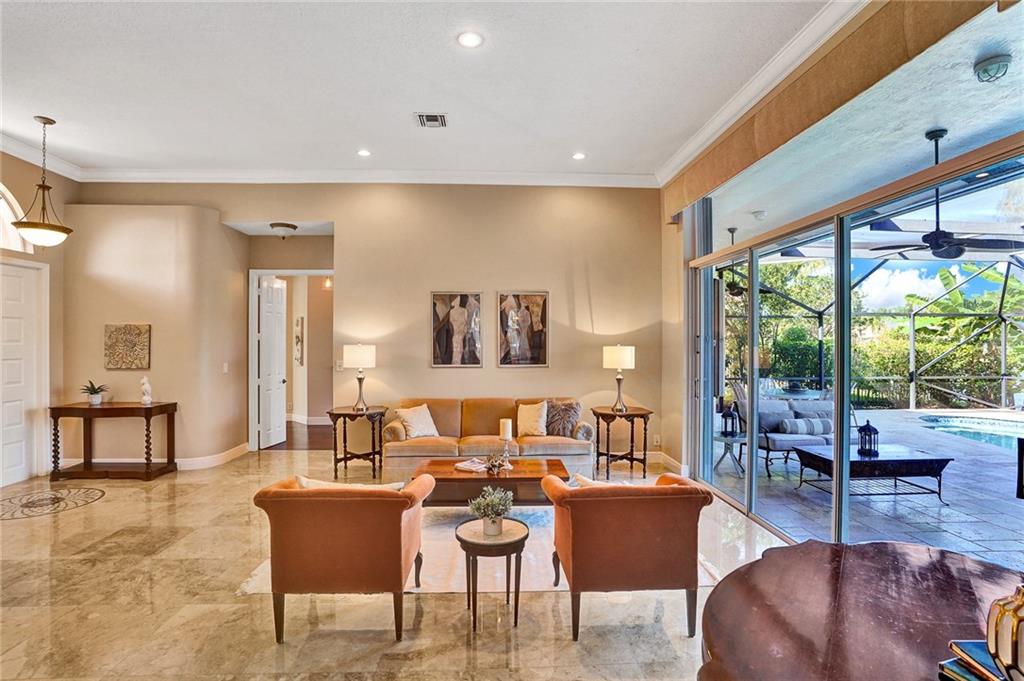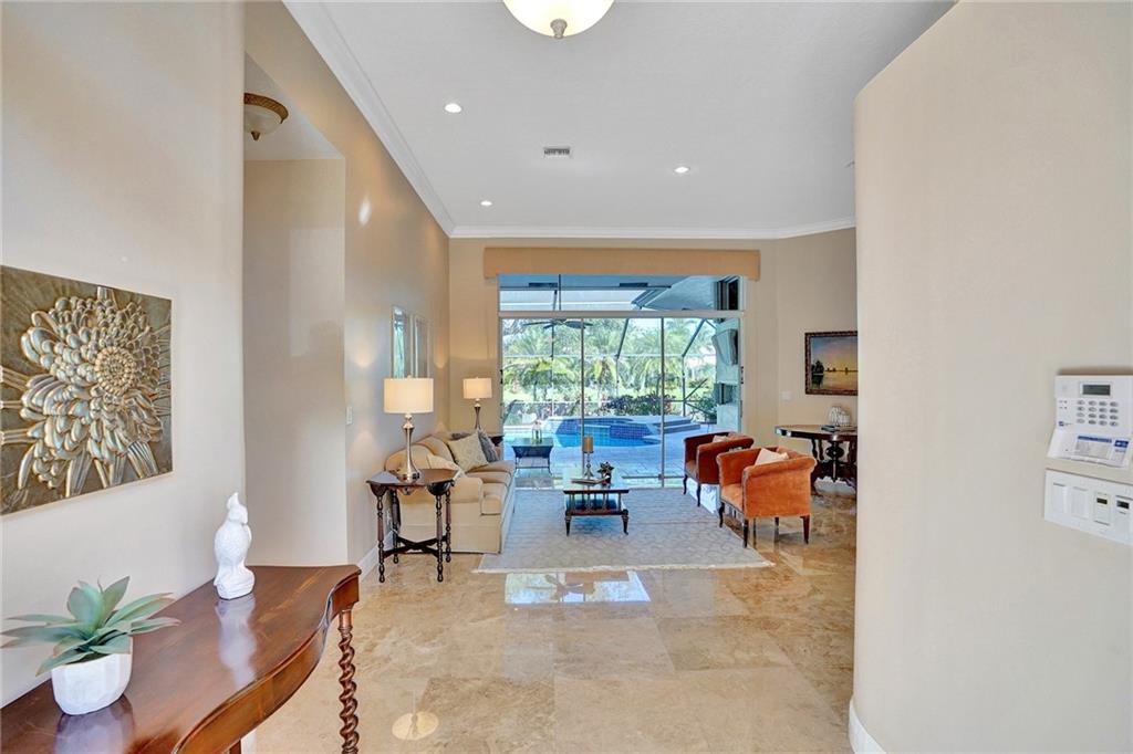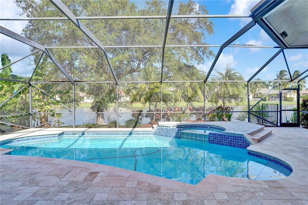 Elegant 5 bedrooms, 4 baths waterfront home in the prestigious gated community of Weston Hills. A view of the very private pool, jacuzzi, and serene waterfront greets you upon enter the living room. This fashionable home includes volume ceilings, crown molding, marble and hardwood floors, and cabinetry with granite counter tops throughout. The kitchen, breakfast nook, and family room open to the pool, as does the master bedroom suite. Over $100,000 in renovations including new HVAC (2019). No detail has been overlooked, with custom shelving in every closet, architectural lighting, and designer hardware. Other features include top rated appliances, deep sinks, and a security system. An elegant, but casual lifestyle awaits you in this immaculate home!