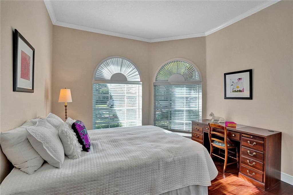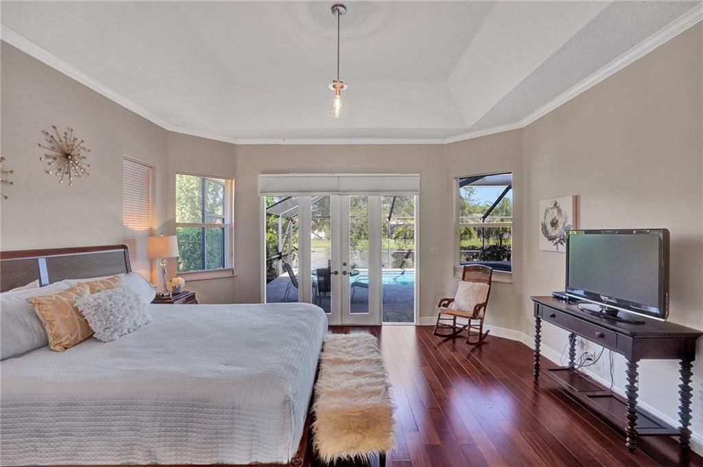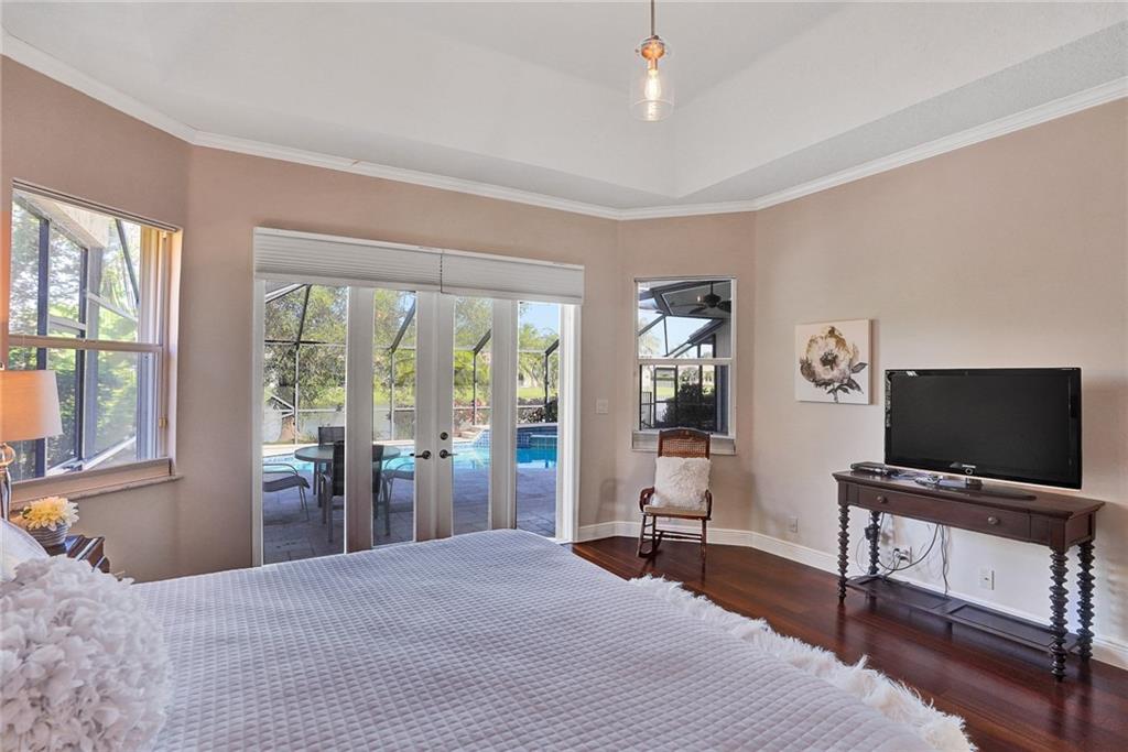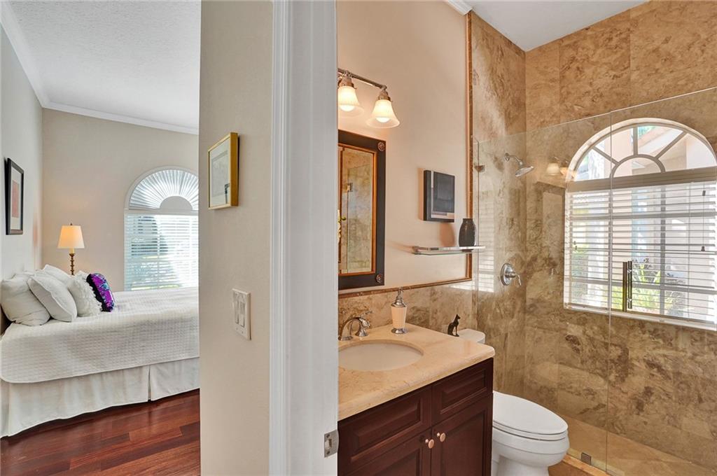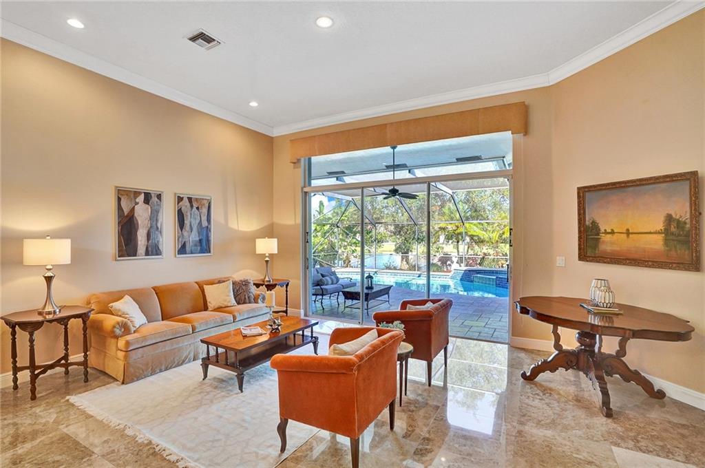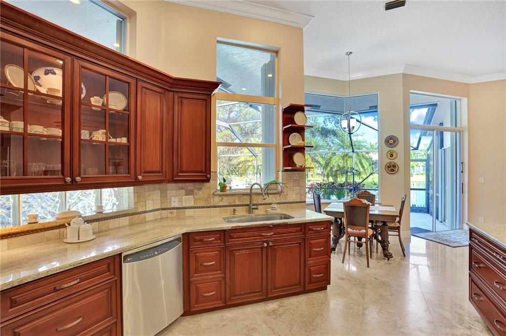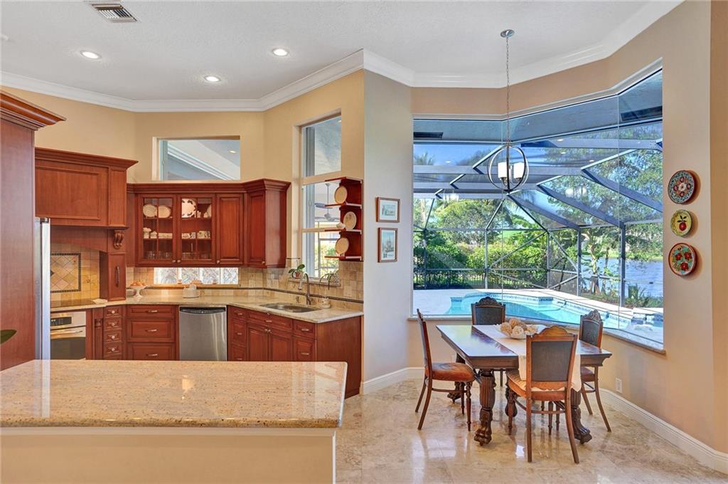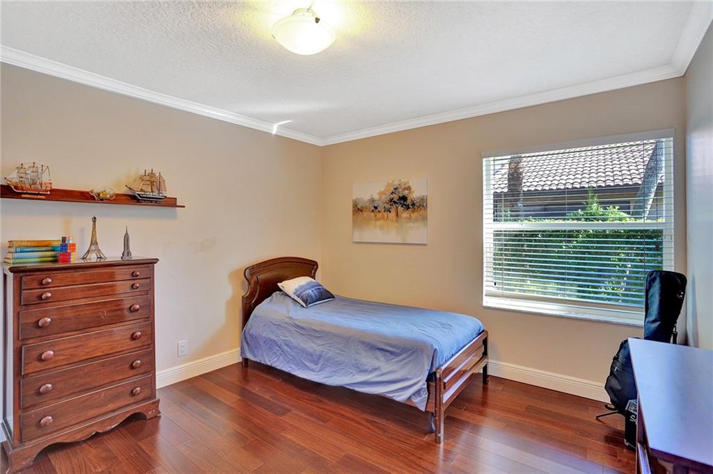 Elegant 5 bedrooms, 4 baths waterfront home in the prestigious gated community of Weston Hills. A view of the very private pool, jacuzzi, and serene waterfront greets you upon enter the living room. This fashionable home includes volume ceilings, crown molding, marble and hardwood floors, and cabinetry with granite counter tops throughout. The kitchen, breakfast nook, and family room open to the pool, as does the master bedroom suite. Over $100,000 in renovations including new HVAC (2019). No detail has been overlooked, with custom shelving in every closet, architectural lighting, and designer hardware. Other features include top rated appliances, deep sinks, and a security system. An elegant, but casual lifestyle awaits you in this immaculate home!