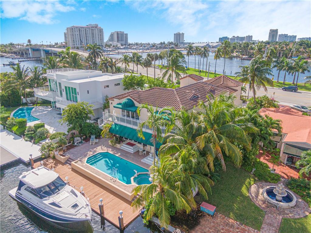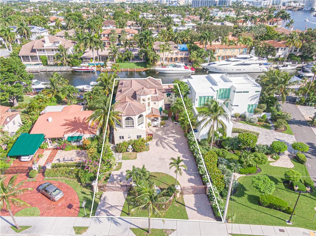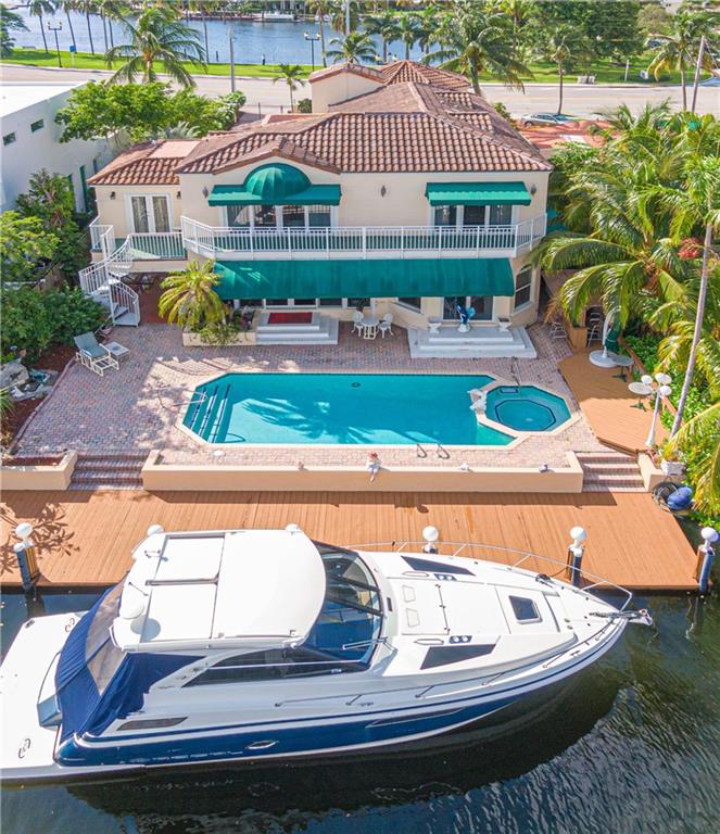 A yachtsman Dream! Just two lots from the Intracoastal waterway on Las Olas Blvd! Two Story Mediterranean with gated entry, walled garden, pool, heated spa, 60 feet on the water, and private entry guest suite. Downstairs offers a large foyer, formal living and dining rooms, family room, spacious kitchen with breakfast room, full bathroom and laundry. Upstairs features three spacious bedrooms, three full baths and sunroom with wet bar. This Las Olas home is perfectly located between the beach and downtown.