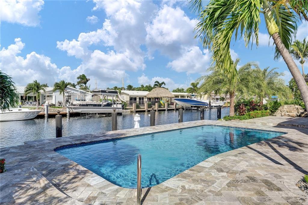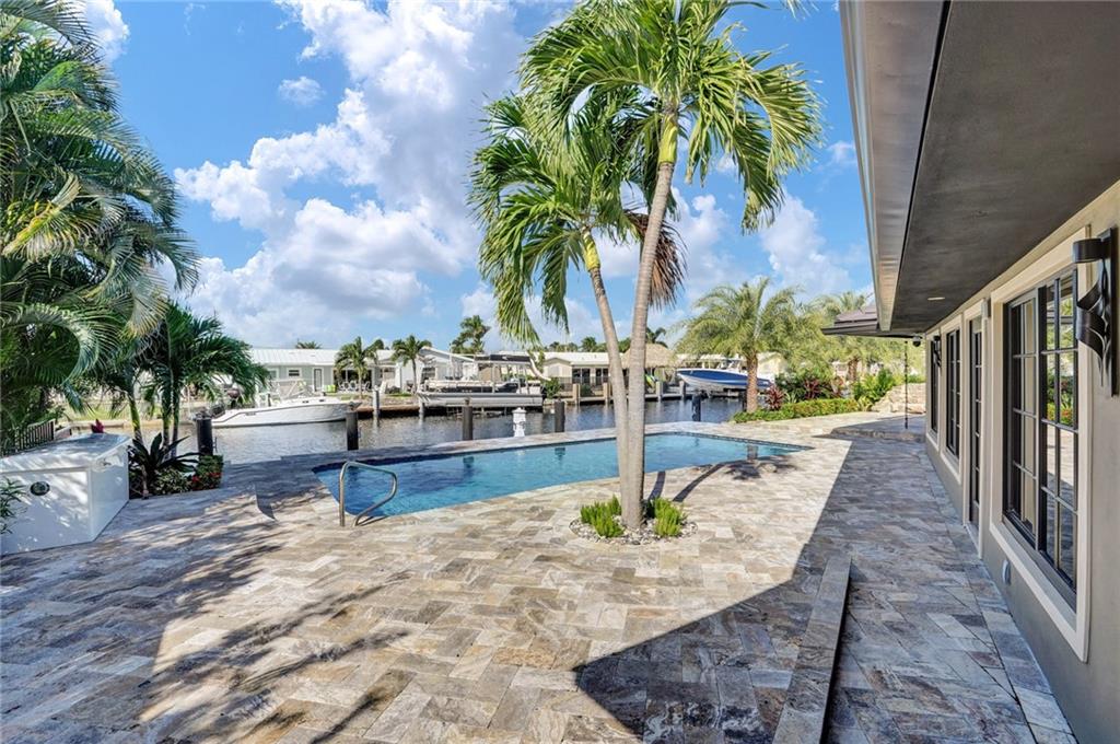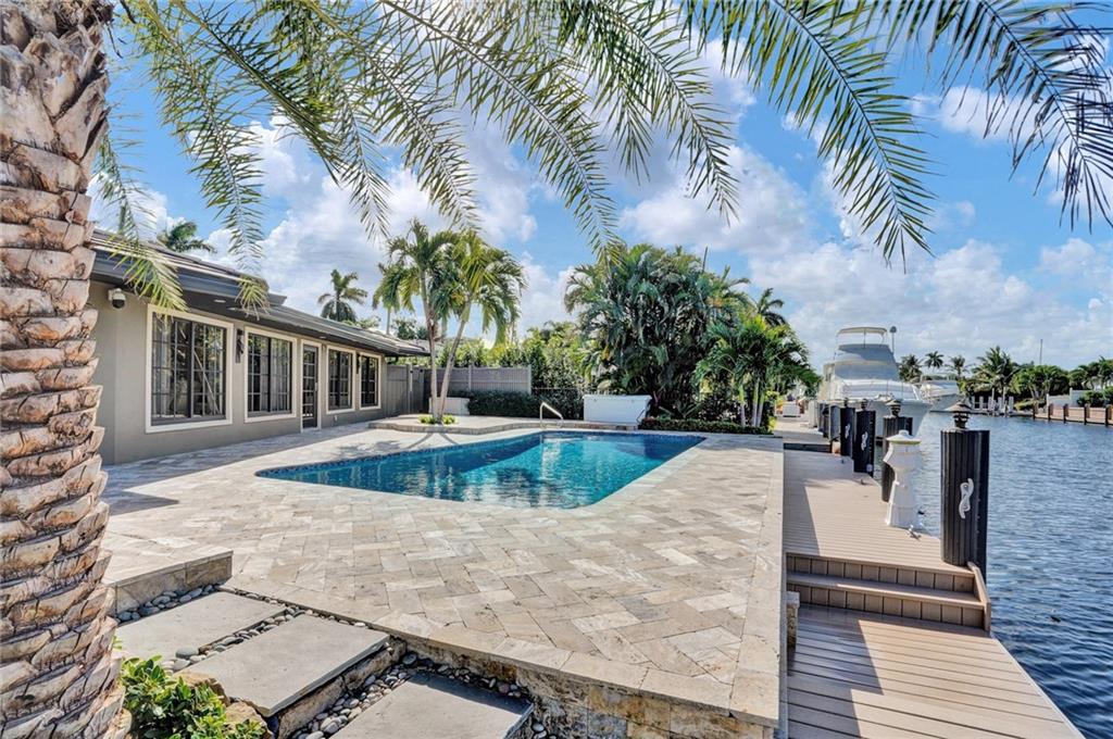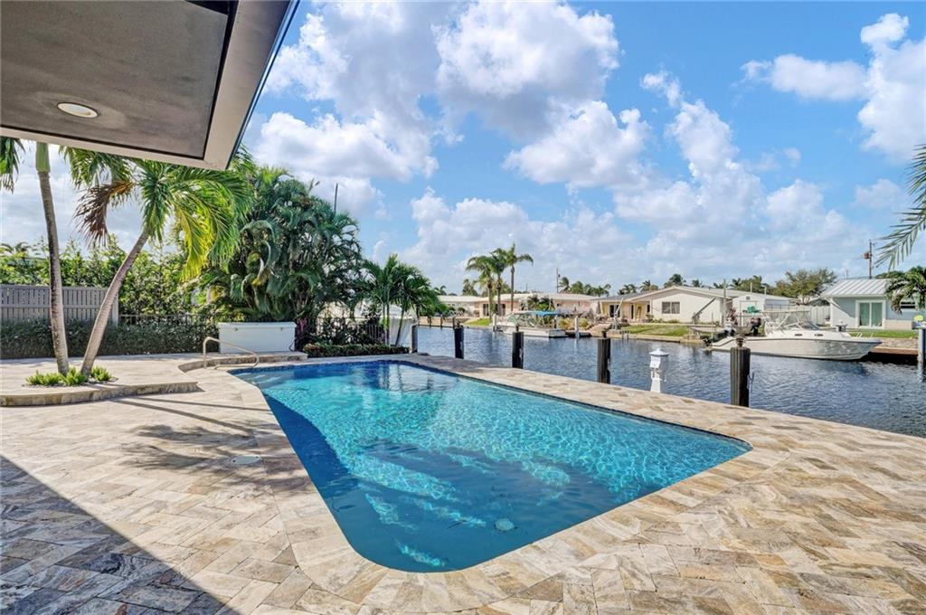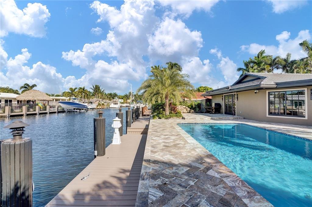Boaters Paradise in highly desirable Harbor Village! Beautiful contemporary waterfront home! 3 Beds/2 Baths/Office. TOTALLY RENOVATED (with all permits) in 2018/19 with luxurious materials. NO FIXED BRIDGES, new 80 ft. of dock equipped with 200amp, water, and lightning to accommodate a very large boat. 2 car garage with tile floor, video camera system, heated pool, new expensive patio for outdoor tropical entertaining with new landscaping. Impact windows and doors, new roof, new floors throughout the house, new wood interior doors, Extenzo ceiling and so much more! Master bedroom features private bath, walk-in closet, and sliding glass doors to pool area. About 15 minutes to Hillsboro Inlet by boat. Minutes to the new Pompano Beach Pier shops and Beachfront restaurants.