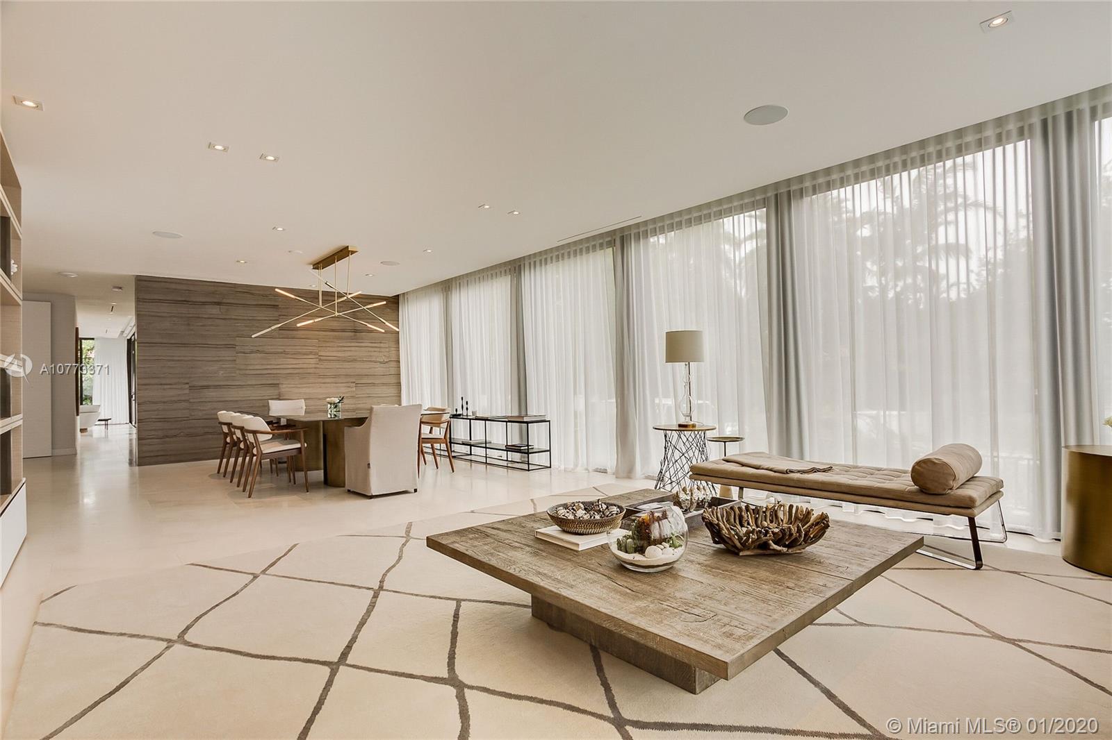 At the core of this 4,000 sq.ft. Venetian Island home is an elegant and spacious kitchen that connects to a light filled family room with rear terrace and pool. Located on a 7,500 sq. ft. lot, this 5-bed house includes formal living and dining rooms, 2 master baths, 5 extra full baths complete with Italian vanities, French Oak wood floors and Ghizzi & Benatti interior doors. The modern Italian kitchen is enhanced with topnotch Sub-Zero & Wolf appliances, premium Rohl and Kohler plumbing fixtures, and contemporary Record E cucine cabinetry. A deluxe rooftop terrace offers magnificent views of Biscayne Bay. The home is outfitted with CGI hurricane impact-resistant windows, doors, and a fully integrated Control 4 automation system. California closets and electric shades throughout.