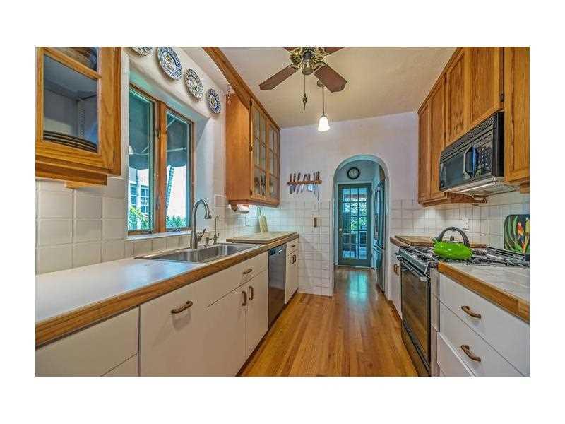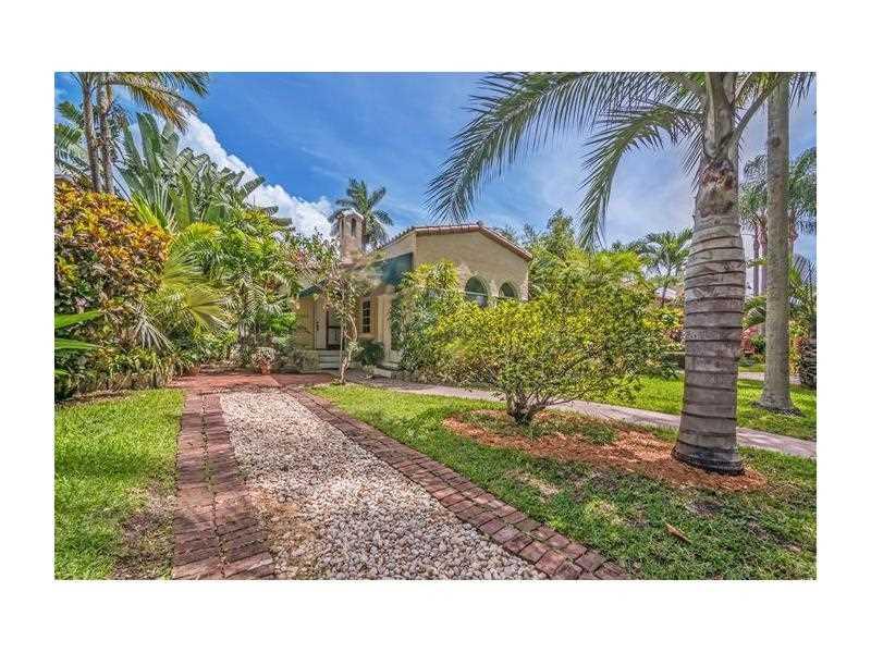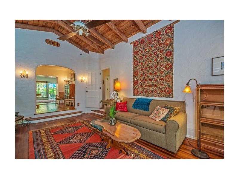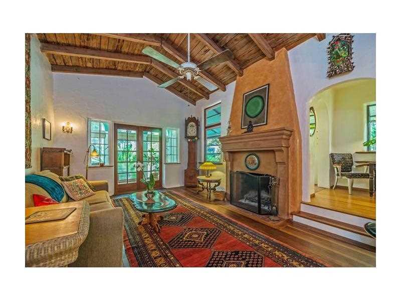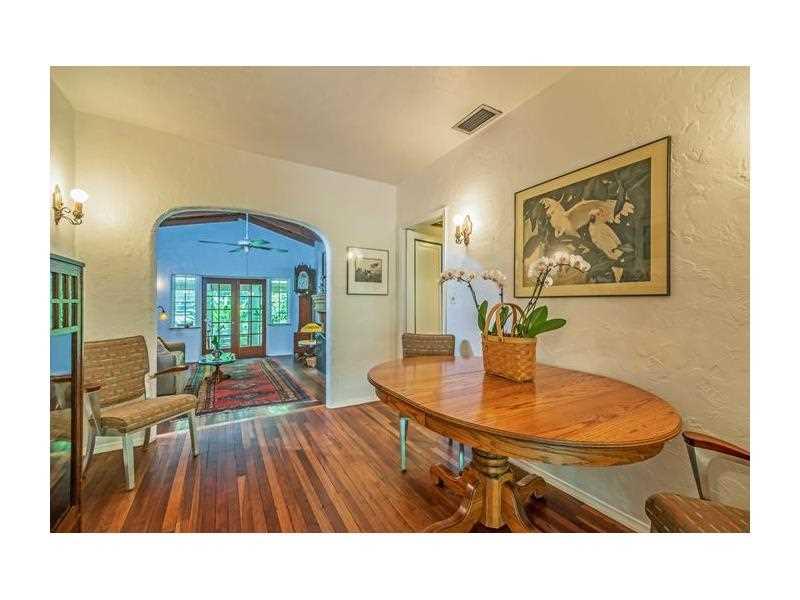 Fabulous Old Spanish gem with hardwood floors and charming archways throughout in quiet, upscale neighborhood. Very spacious living areas include front screened porch, separate formal liv rm with fireplace & open beamed ceilings, separate formal din rm, large family rm overlooking private gardens, galley kitchen with sep breakfast room, sep butler's pantry with half bath. Back garden has large seating deck and room for pool, many specimen (palms & tropical) plants, full garage.