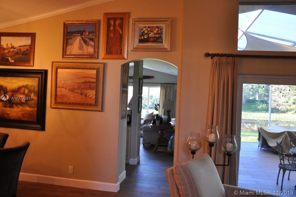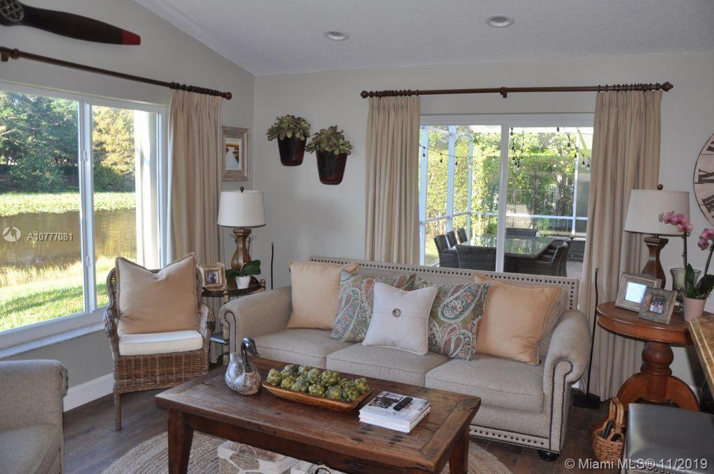 Beautiful 4 bedroom house with serene water views! Totallyrenovated granite kitchen! HUGE screened patio, Great for entertaining, Overlooking the water. Roof only 9 years old. Accordion hurricane shutters throughout. French doors into the 4th bedroom that is currently used as a den. Separate dining room. Home totally renovated 2 years ago!! New bathrooms, floors, Impact windows (partial), LED lighting throughout, A/C 4 years old, Closets with built-ins. Wonderful house to call home in a great community! This home is move in ready with no work or repairs needed. Guard Gated Community, With A Lovely Community Pool And Park Area. Quiet, Spacious And Completely Renovated. A MUST SEE !!