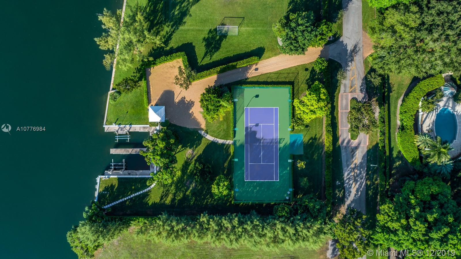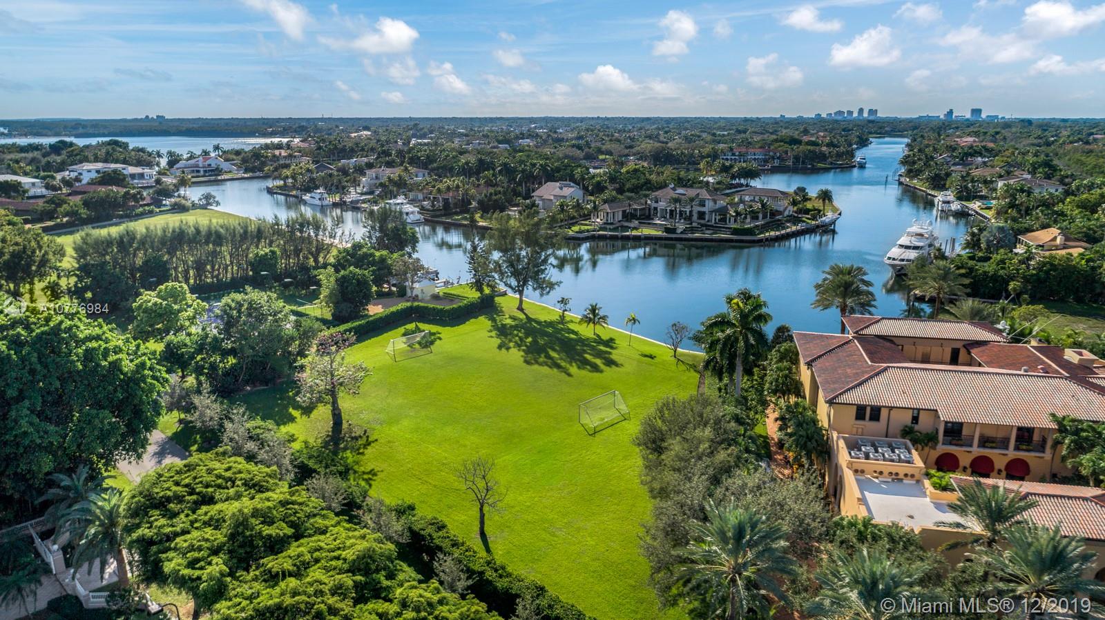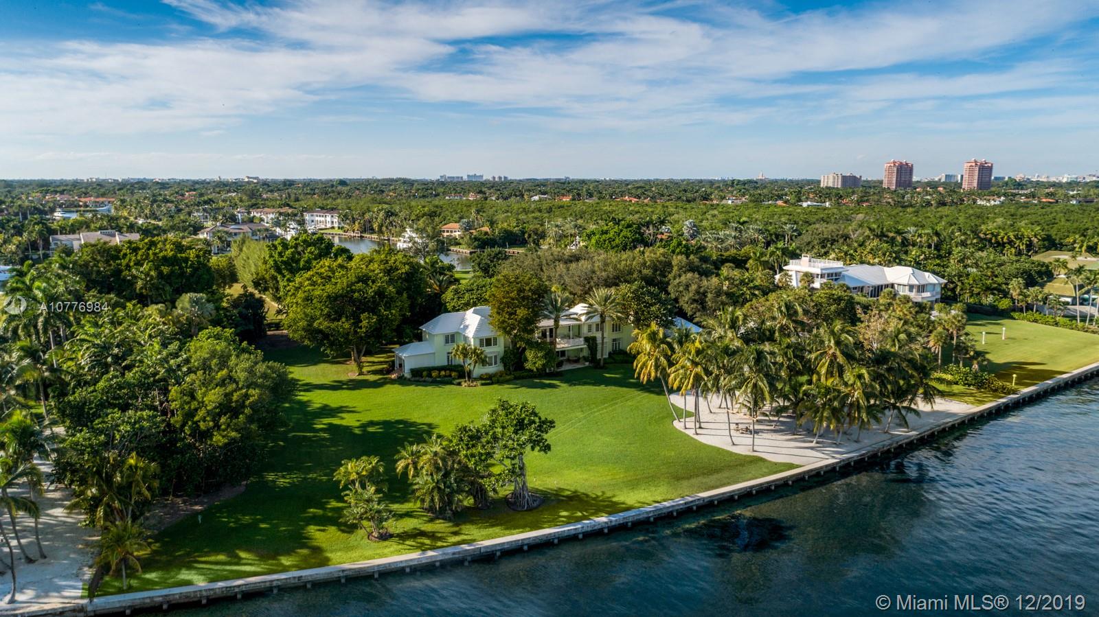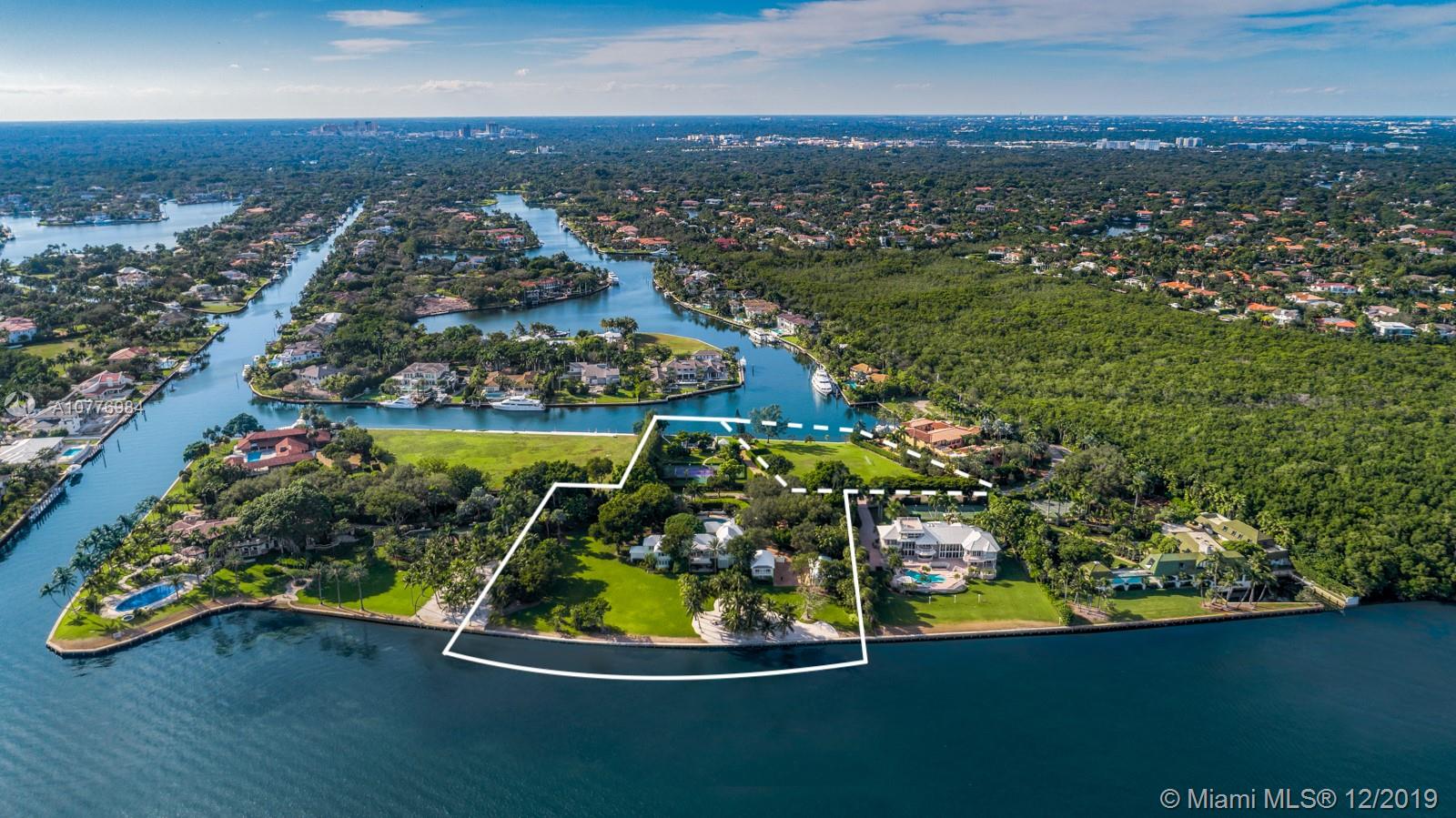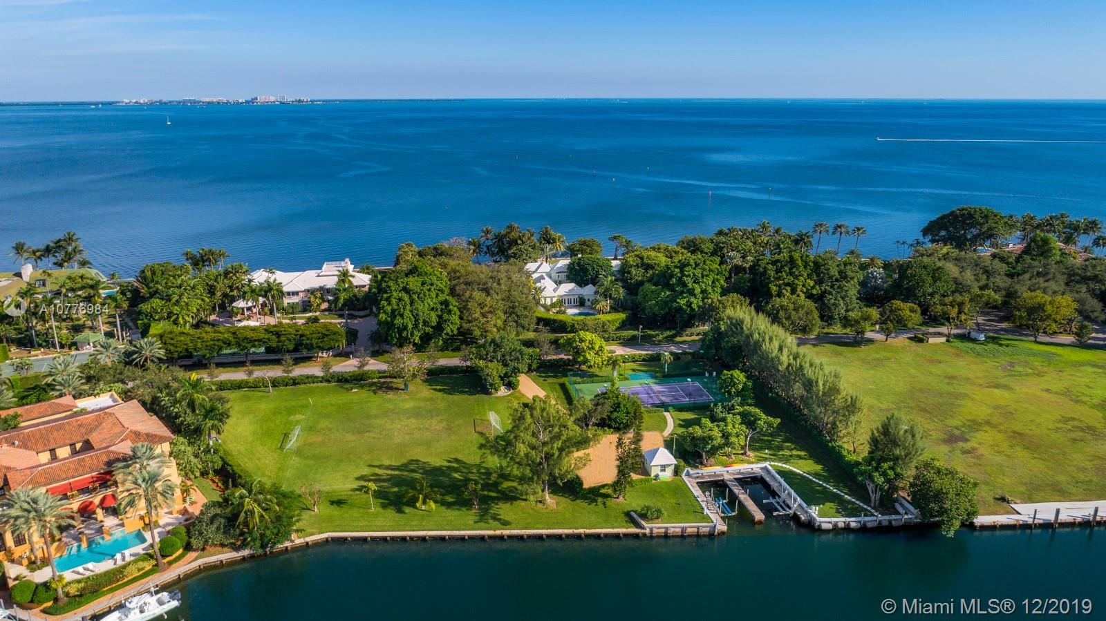 A once in a lifetime opportunity to purchase the largest parcel of land situated within the secure gates of Gables Estates. The properties consist of 4.5 acres with 630 feet of combined water frontage over 2 lots. The main residence is a 3.3 acre property with 450’ of direct bay frontage. Enjoy expansive views of the bay out to Key Biscayne, South Beach and the Downtown Miami Skyline. Directly across the private street, sits an additional 1 acre waterfront lot, with 180’ of seawall - the perfect set up for yachters. This lot includes a tennis court, 2 boat lifts, and plenty of storage for water toys. An additional 1.25 acre abutting waterfront vacant lot can be purchased with the sale for over 5.5 total acres — making this the largest privately owned property in all of Gables Estates.