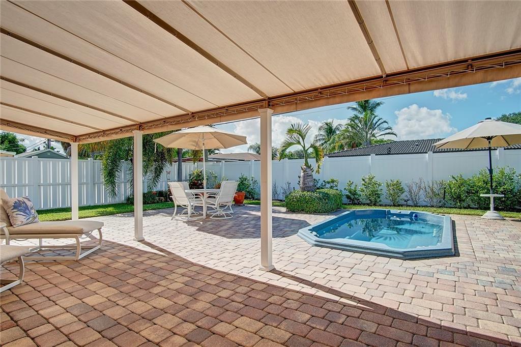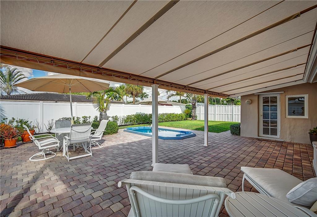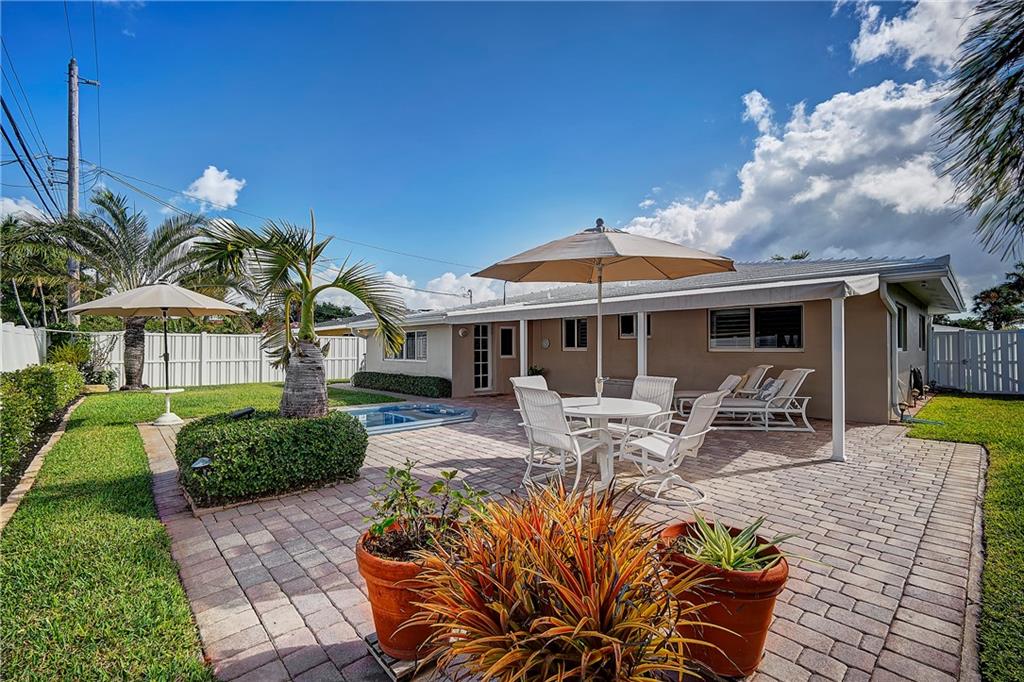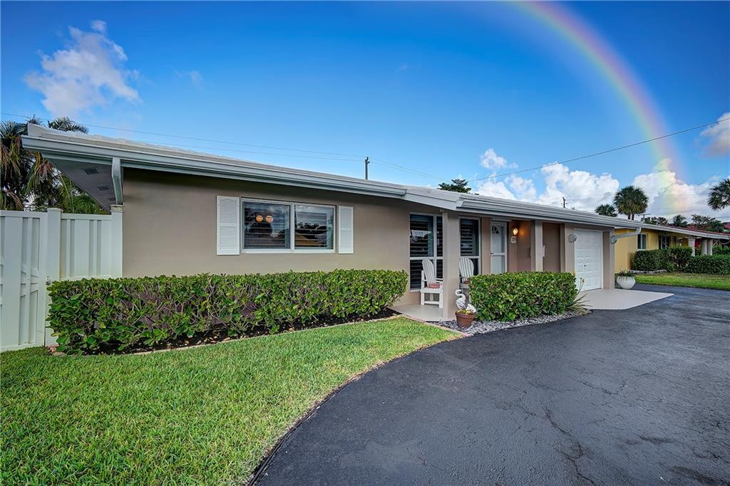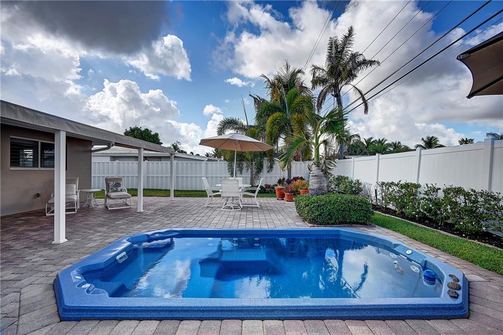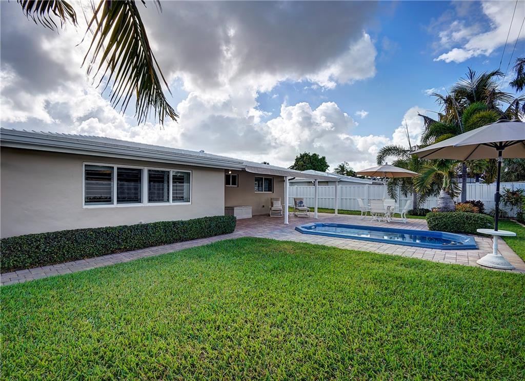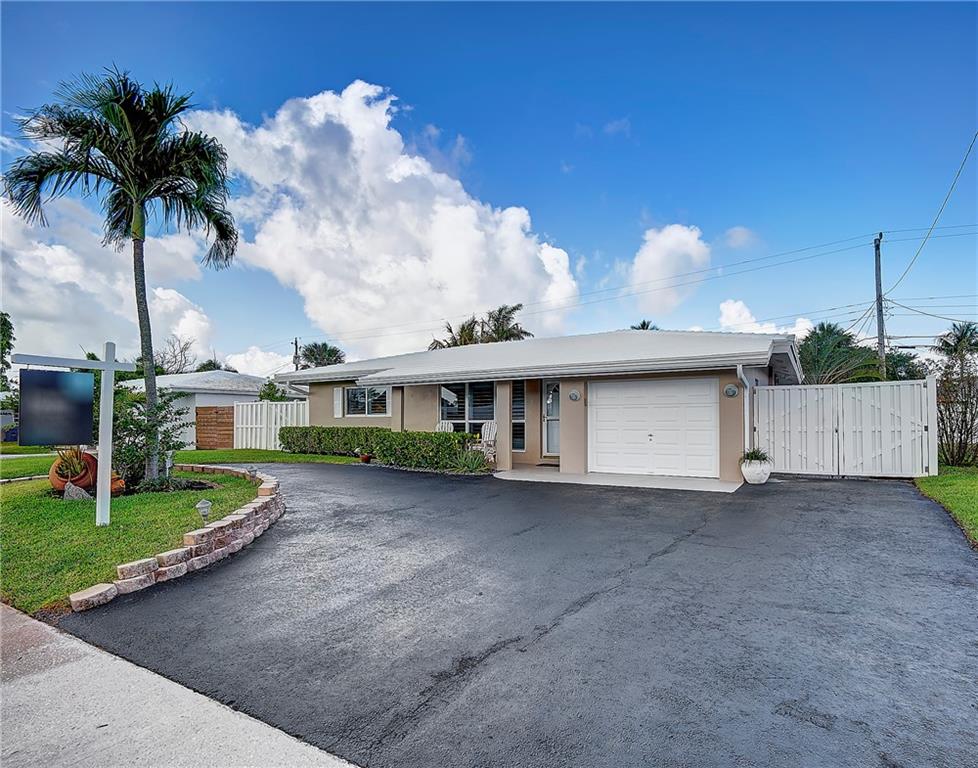 Welcome Home! nestled in East Pompano Beach, only a short distance to the beach, shopping, dining and entertainment, you will fall in love with this home from the minute you pull into your private circular driveway,freshly painted exterior, the interior features open floor-plan ideal for entertainment, beautiful kitchen with lots of storage, ceramic tile throughout, expansive bedrooms and fully remodeled bathrooms, brand new carpet, brand new washer & dryer, new a/c ducts and unit, new tankless water heater, plantation shutters, impact windows and doors, formal dining area[leading to your tropical oasis, new covered outdoor space, freeform spa/mini pool, manicured grounds surround the entire backyard, outdoor shower, and new PVC fence for maximum privacy. A MUST SEE!