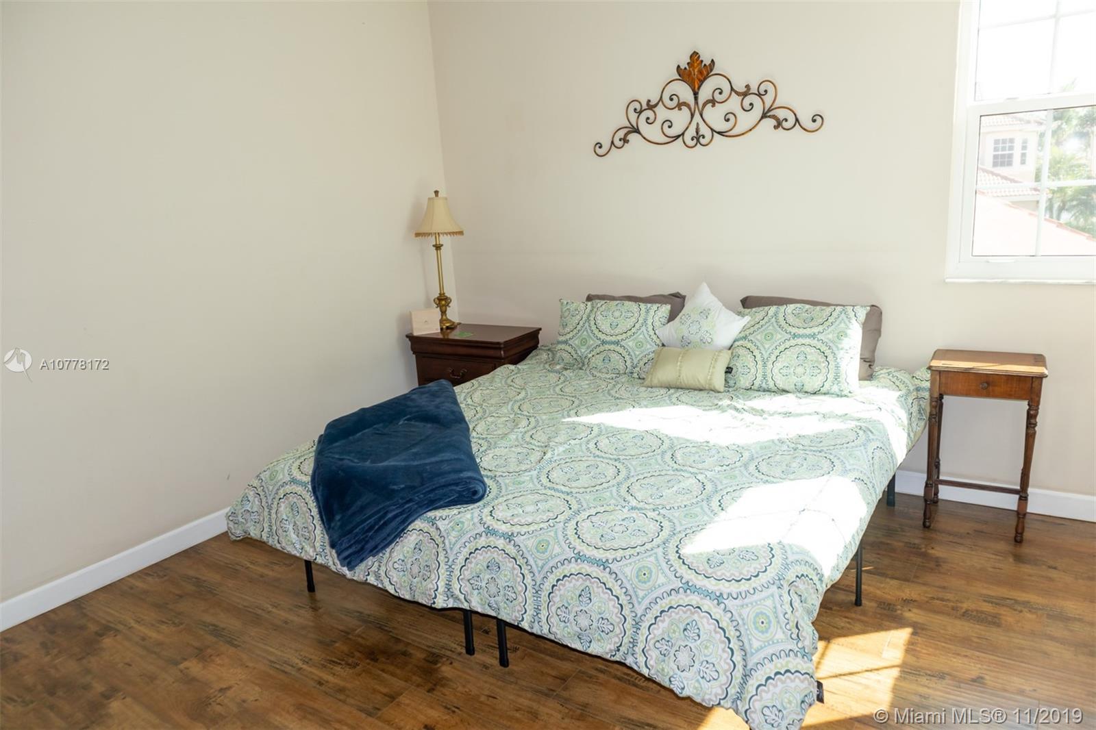 Bright, spacious and completely remodeled corner townhouse at the gated community of San Remo at Weston, two master bedrooms each with their own bathroom. One car garage, impact windows and new a/c. Tastefully renovated with porcelain tile and laminated wood floors, large gourmet kitchen, luxurious granite counter tops and stainless steel appliances. Kitchen area has an open concept with a great area, casual dining and convenient half bath. Enjoy the screened patio with tranquil garden views and plenty of yard space on the side and rear. Long driveway and guest parking close to the unit. The community features Club House with pool, playgrounds and basketball court. Located at biking or walking distance from elementary school, close to best restaurants, shopping and accessible to highways.