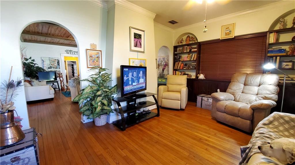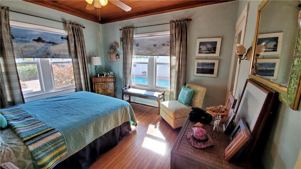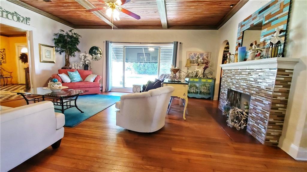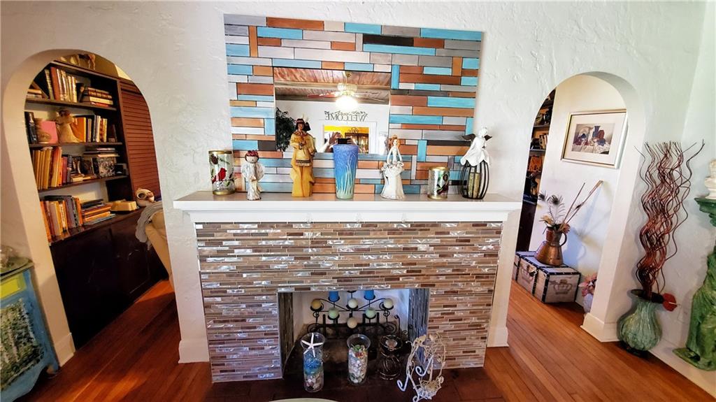 Welcome to the fantastical 1924 Wallace Robinson Home. A main house, guest house & efficiency workshop with over 3600 sf & 4 bdrms, 3 baths in all. A manicured corner lot jewel of a home sitting on over 1/3 acre. The architectural style is an Exotic Moorish Revival motif believed to be fashioned after the famous literary works of "1001 Arabian Nights". See 1/2 round windows, parapet roof, and a dome entrance. Enterance with original marble floors, heavy stucco walls, original doors & knobs, original french doors & 1920's built in cabinetry. Beautiful mighty red oak wood floors and wood ceilings flow through many of the rooms in this home. A serene escape awaits you with this centerpiece decorated fireplace, pool & jet tub, Koi fish ponds, fire pit seating area, and gardens to unwind to.