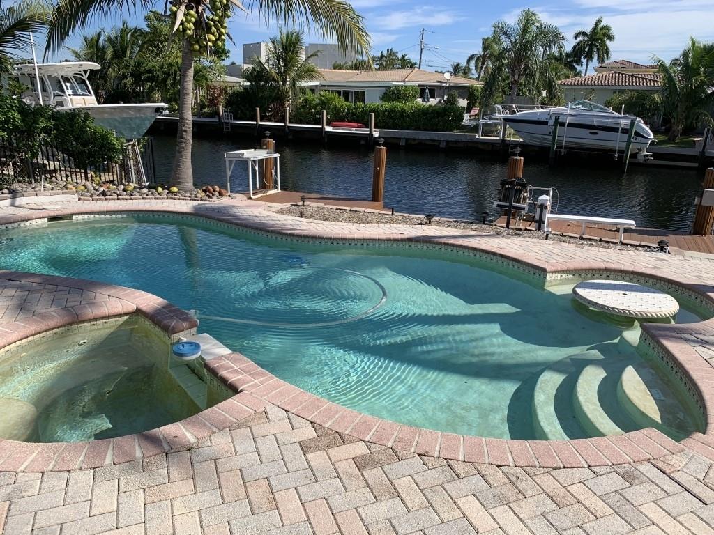 Beautiful 3 bedroom 2 bathroom waterfront home for sale. Perfect renovation project (some upgrades needed). This home is located on the water with ocean access (1 fixed bridge). This property includes a pool w/attached jacuzzi. Located 1-1/2 miles from the ocean in the desireable Garden Isles neighborhood.