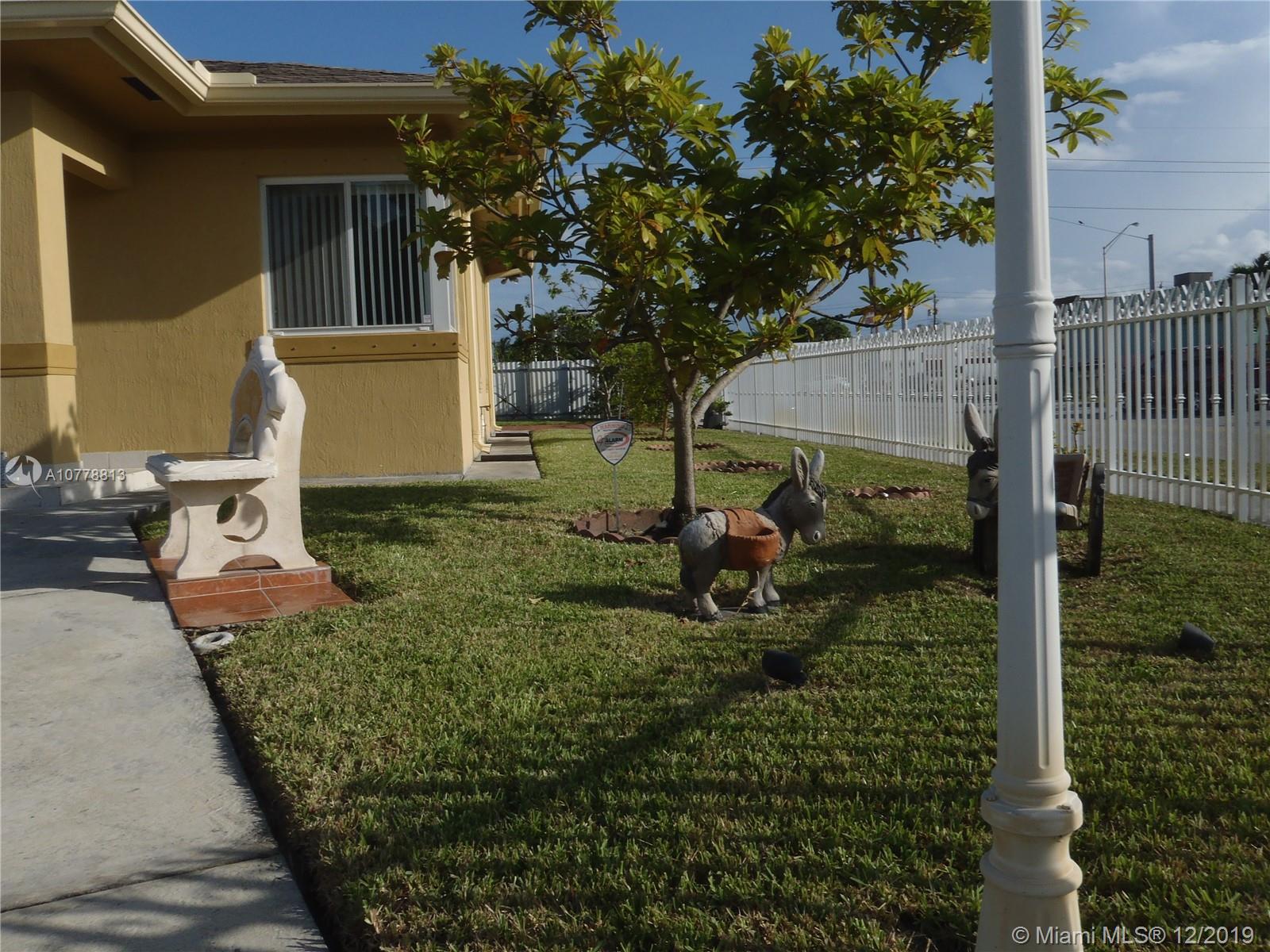 Corner lot home for sale in East Hialeah. The property has 3 bedrooms and 2 baths; a full master bedroom with walk-in closet. A kitchen with wood cabinetry, granite counter tops, and stainless steel appliances. Ceramic tile throughout, security system, smoke detectors, gate door opener, hurricane shutters panels, rain gutters, sprinklers system and much more. Driveway and paved backyard offer a room for a boat, a RV or parking for more than 10 cars. Patio has fruit trees. The house is impeccably maintained and centrally located; near from schools, shopping centers, public parks; has easy access to major highways and minutes away from Miami airport and Miami downtown.