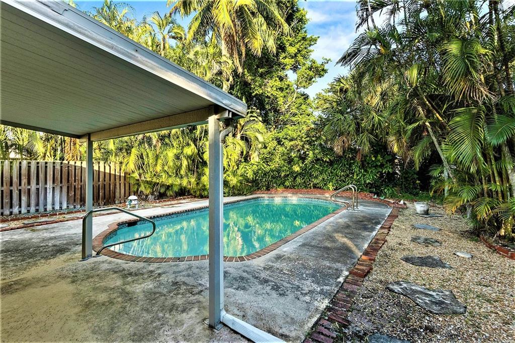 Great opportunity! Charming Pool Home in Sought-After Poinsettia Heights Neighborhood. Loved by the same owners since 1985, perfect for creating a private retreat. Large Over-Sized Pool (15' x 25') is nestled in Mature, Lush Tropical Landscaping, making it easy to create your own soothing oasis. Features include New Roof, Central Air, New Pool Pump, Fenced-in Yard, Well Sprinkler System, Carport, Separate Laundry Room & Pantry. Quaint Florida Room surrounded by 3 side of glass overlooks the Garden & Pool Area. Additional bonus: 2 Covered Porch Areas in the Backyard. Hidden Terrazzo Floors waiting to be revealed under the carpet and tile, if you so desire. Easy to convert into a 3 Bed / 2 Baths if you'd like to do so....VIRTUAL SHOWINGS available by Request..