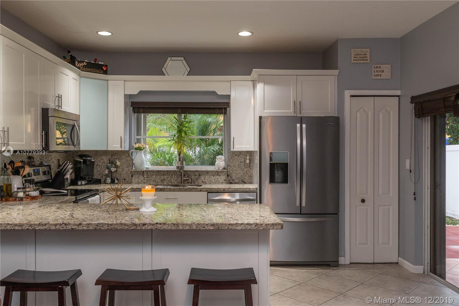Feel right at home in this PRISTINE 2 story, 3 bedroom, 2-1/2 bath townhouse in desired Somerset Cove at Vizcaya - a prestigious GATED community. Spectacular OPEN FLOOR PLAN features a living room w/vaulted ceiling; dining room w/access to private SPACIOUS BACKYARD; family room opens to a BEAUTIFUL MODERN KITCHEN features white shaker cabinets; SS appliances, GRANITE counter top, backsplash and breakfast bar. 1st level features a fully UPGRADED ½ BATH; laundry w/BRAND-NEW FULL-SIZE washer and dryer. 2nd level features a large Master Bedroom, spacious walk-in closet and FULLY UPGRADED MASTER BATHROOM; 2 more bedrooms and FULLY UPGRADED BATHROOM. NEW ACCORDIAN SHUTTERS throughout. BRAND NEW 2018 A/C unit. 1 CAR GARAGE. Driveway parking + guest nearby. Community POOL. Near VIZCAYA PARK.