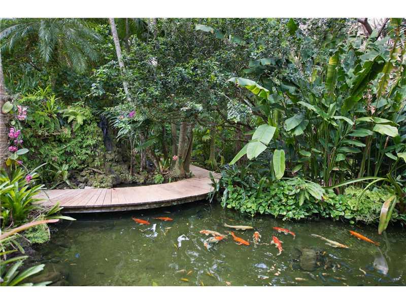 Warm Elegance in Coral Gables! This captivating estate with extraordinary style, architectural splendors & magnificent vegetation on 1.5 acres awaits you. Showcasing an artful blend of fine design & meticulous craftsmanship, the home boasts a 13-seat theater, gym, mahogany impct wndws & drs, mosaic-tiled 60-ft pool w/gazebo & summer kitch. Ipe wood paths lead you through the rain-forest inspired gardens w/waterfalls, koi ponds, native trees & tropical fruit orchard. 3CG. Marina w/ocean access.