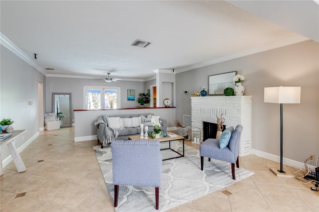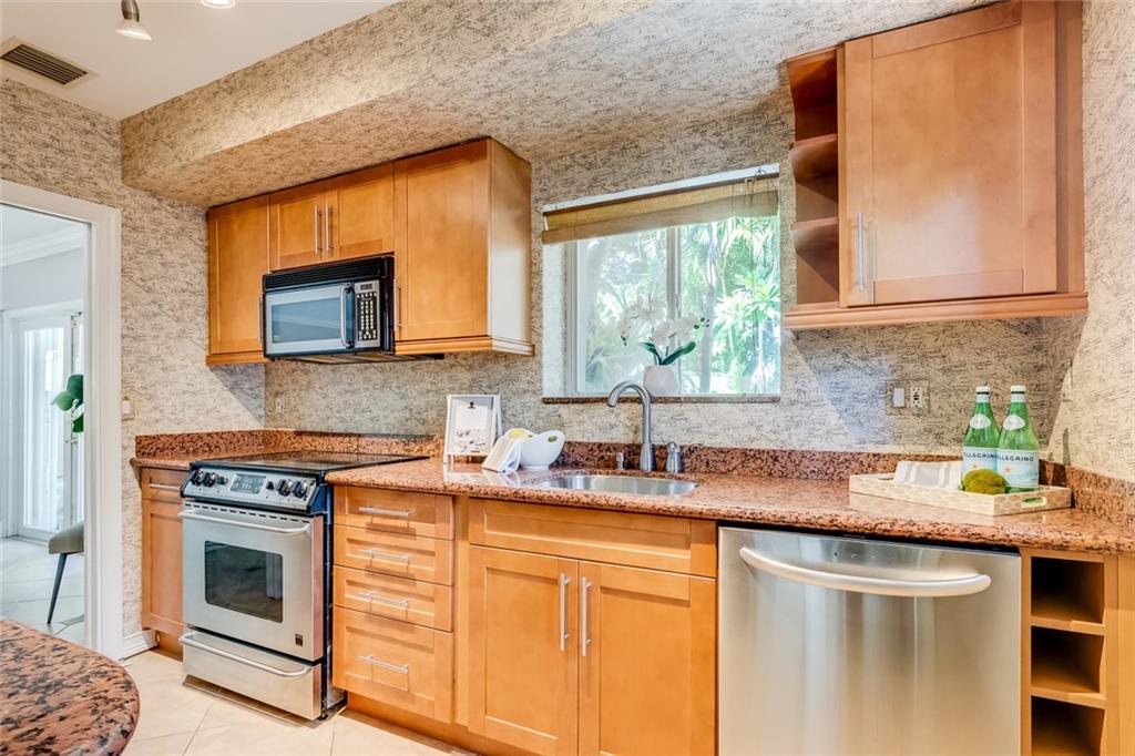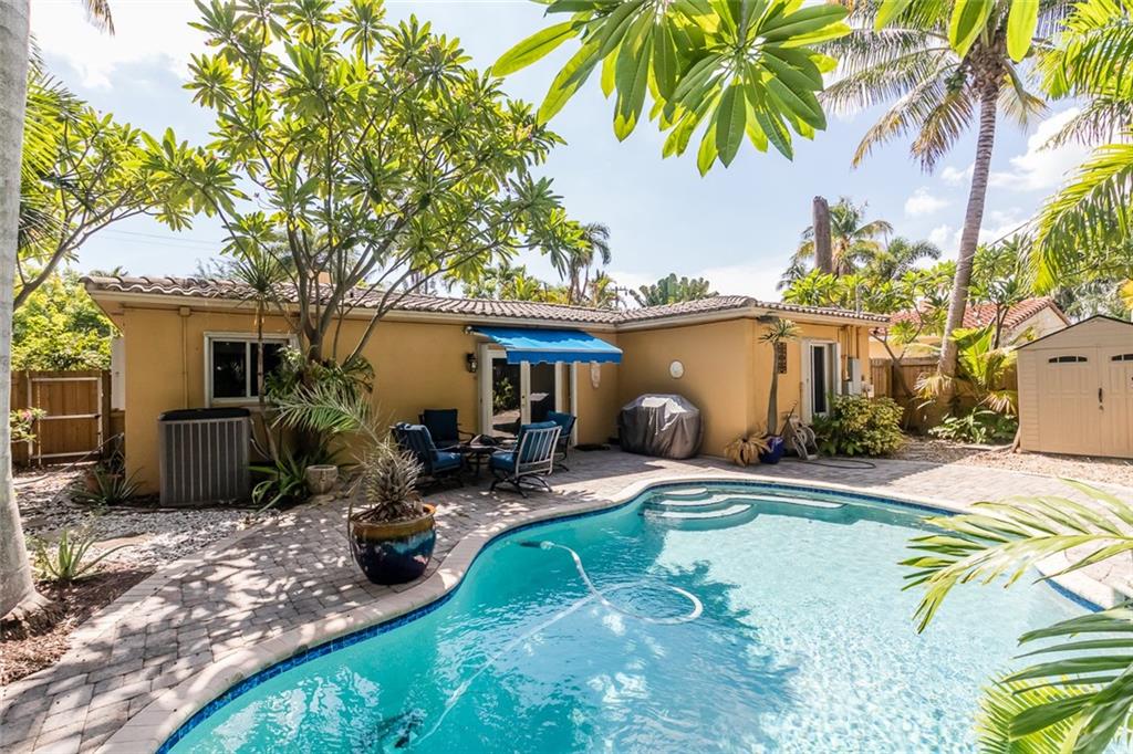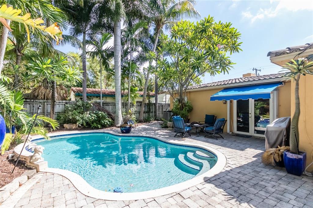 LOCATION LOCATION. Situated in the sought after "EAST" portion of Victoria Park across the street from the middle river, feel the breezes Walk to shops, movies, and restaurants. 12 minute walk to beach, or lounge at your completely private pool area. Thomasville galley kitchen with granite/stainless. 1 car garage with plenty of storage.Other features include a newer S-tile roof, wood burning fireplace, Chicago brick driveway, sunny family/office A private matured tropical paradise w/ beautiful pool.