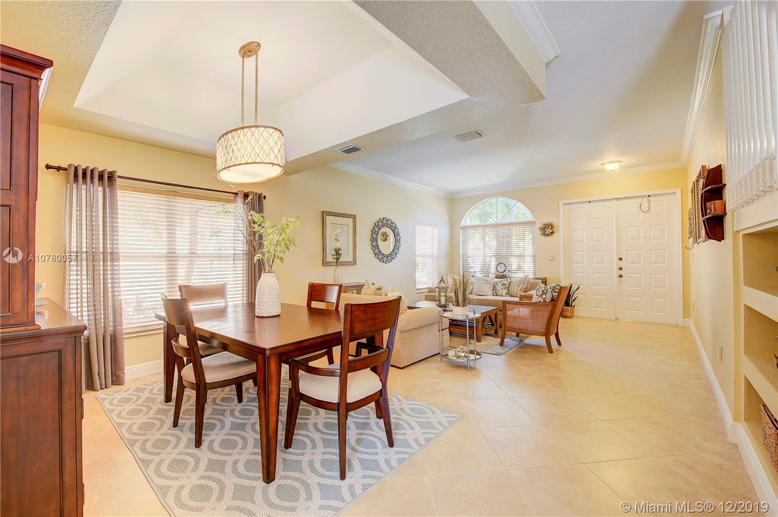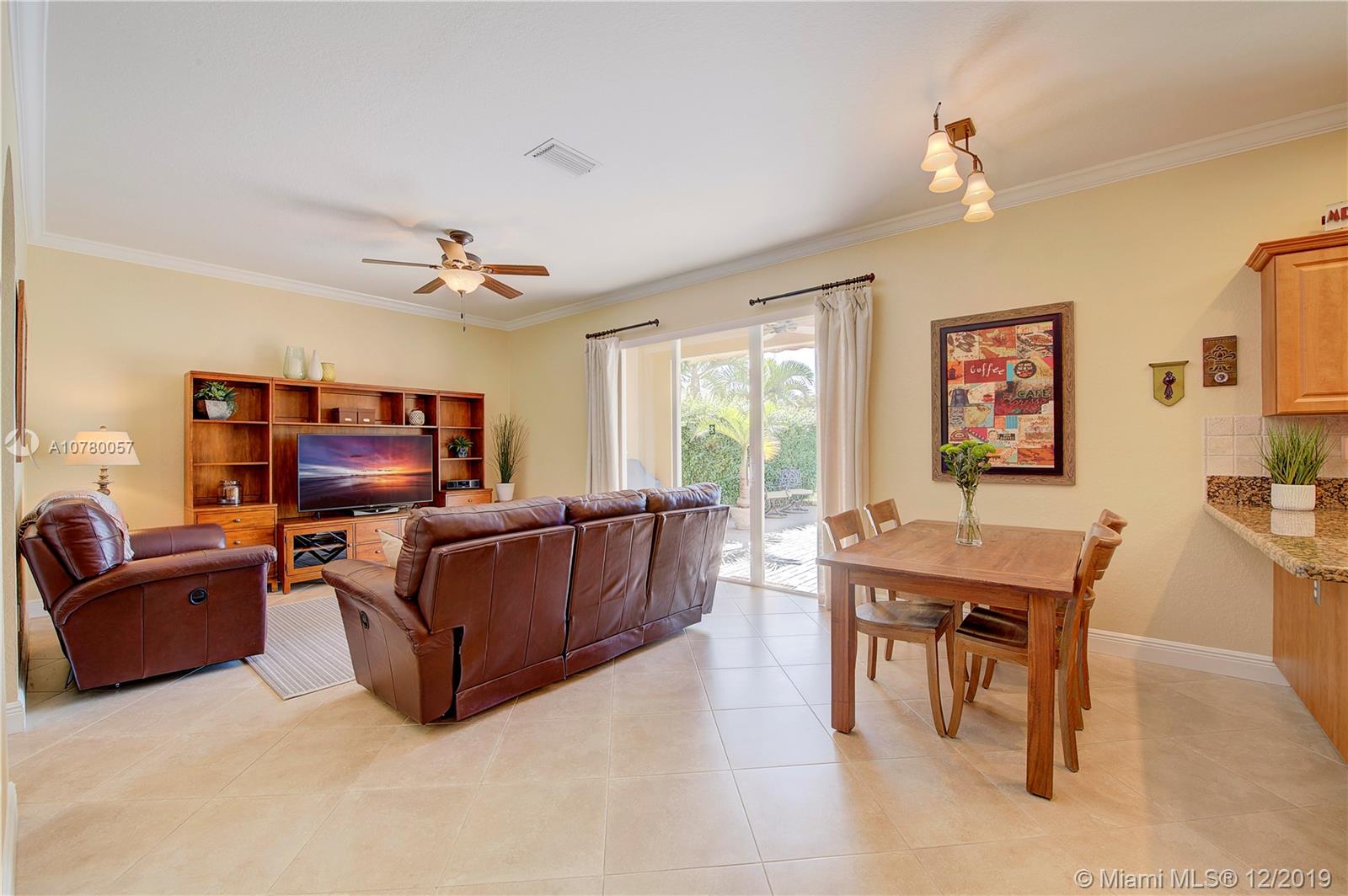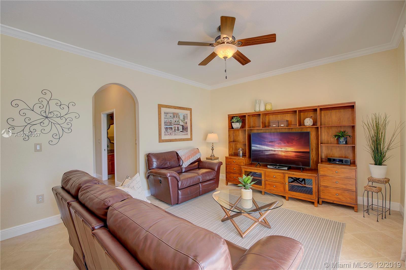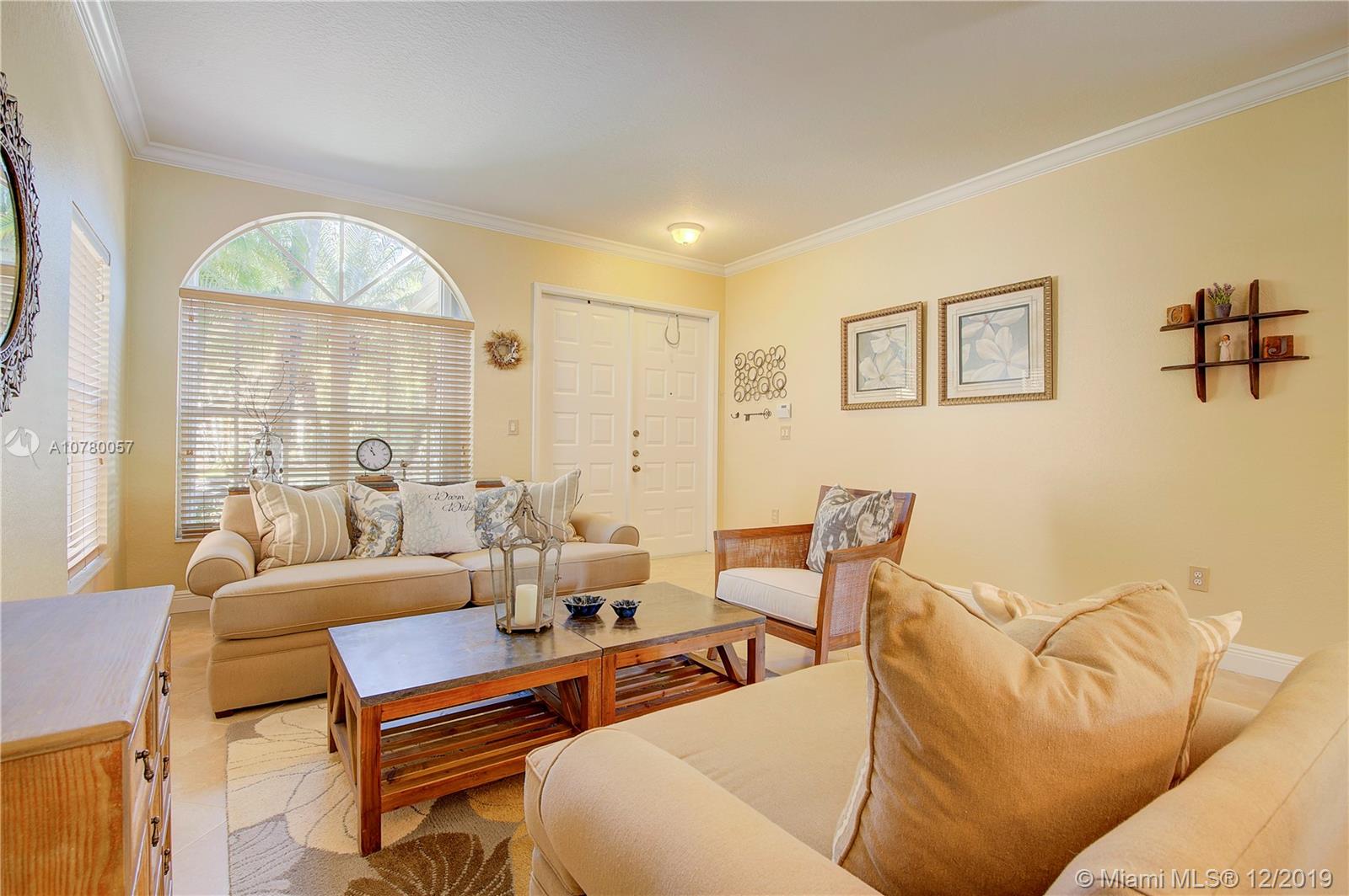Grab your favorite beverage and enjoy the Sunrise and Sunsets from your master bedroom balcony overlooking wide lake views and your beautifully sparkling blue pool. Nestled in Ruby Cove at Emerald Estates, a gated Weston community, this 4 bedroom, 2 1/2 bath home is ready to move right in! Crown molding and upgraded baseboards throughout living area. Kitchen with granite and stainless appliances, open concept floor plan. Newer carpet, and tile flooring with interior neutral colors. Pool and Patio have a Sunsetter awning for the ultimate in comfort. Full Hurricane accordion shutters. Full service community includes lawn maintenance & cutting, fertilizing, tree/palm trimming, weed prevention, sprinklers, alarm system monitoring, cable TV and internet, as well as a community pool and gym.