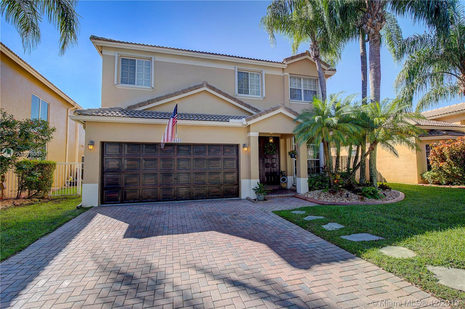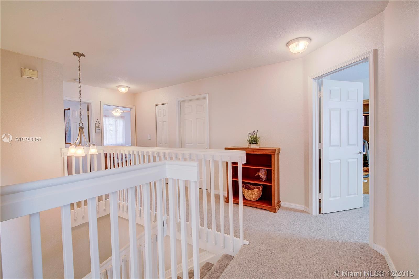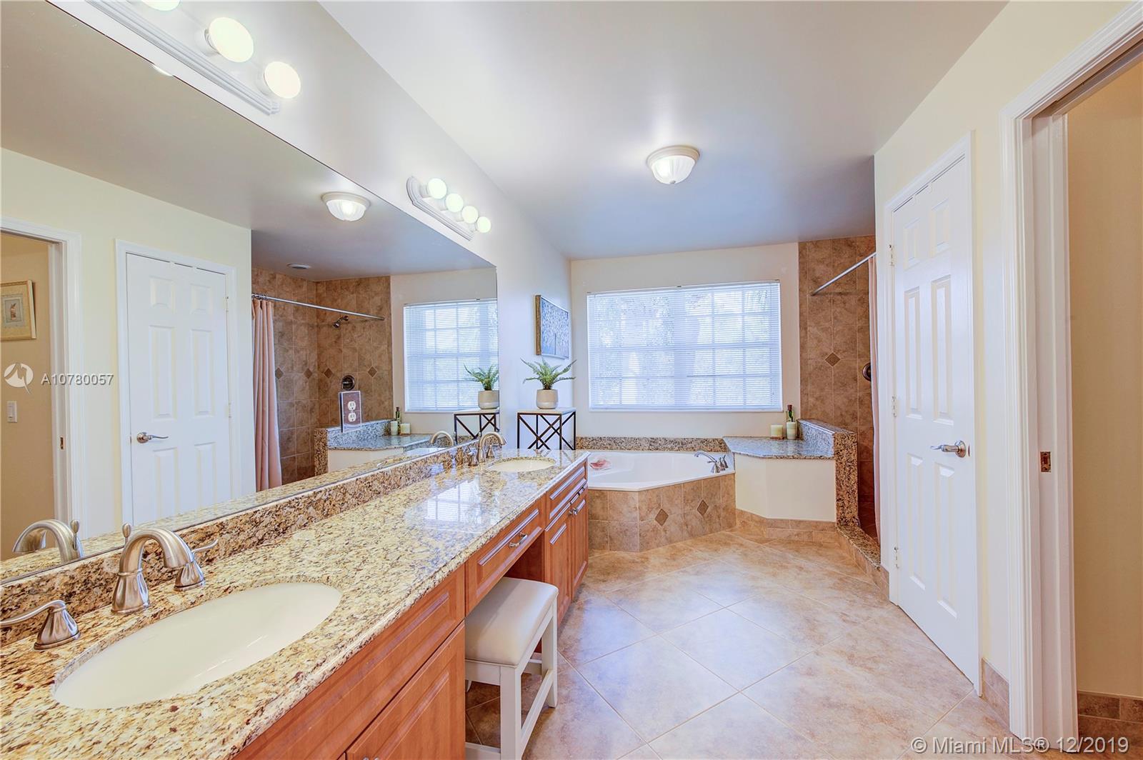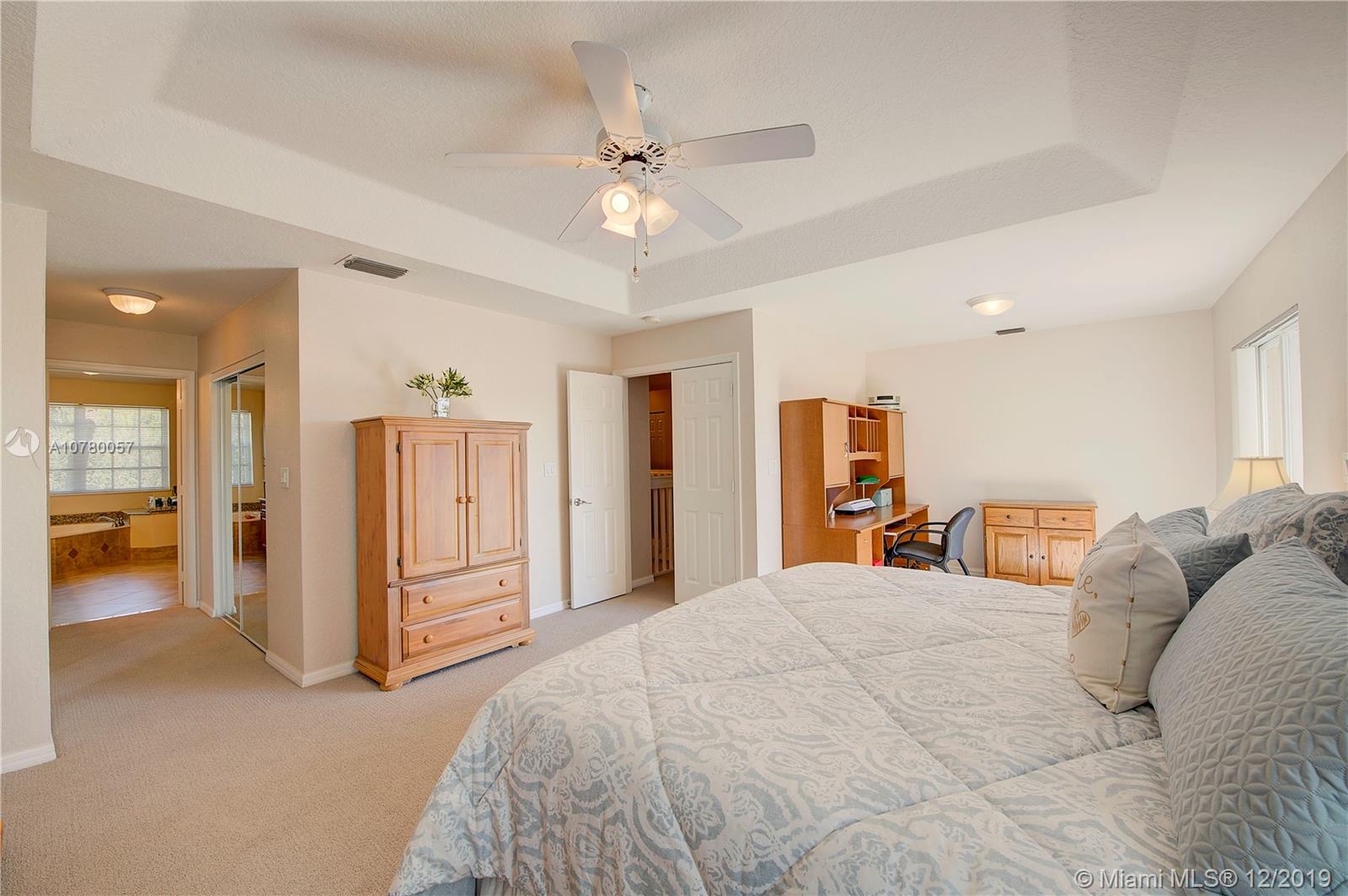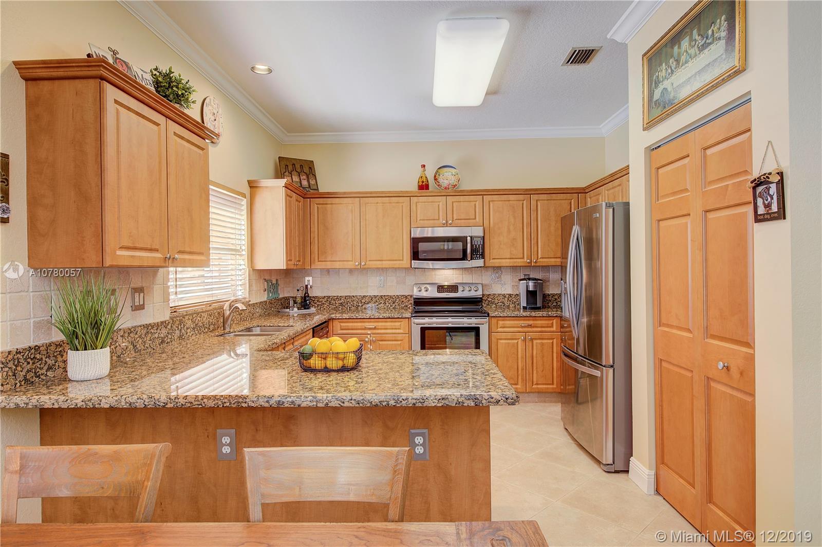 Grab your favorite beverage and enjoy the Sunrise and Sunsets from your master bedroom balcony overlooking wide lake views and your beautifully sparkling blue pool. Nestled in Ruby Cove at Emerald Estates, a gated Weston community, this 4 bedroom, 2 1/2 bath home is ready to move right in! Crown molding and upgraded baseboards throughout living area. Kitchen with granite and stainless appliances, open concept floor plan. Newer carpet, and tile flooring with interior neutral colors. Pool and Patio have a Sunsetter awning for the ultimate in comfort. Full Hurricane accordion shutters. Full service community includes lawn maintenance & cutting, fertilizing, tree/palm trimming, weed prevention, sprinklers, alarm system monitoring, cable TV and internet, as well as a community pool and gym.