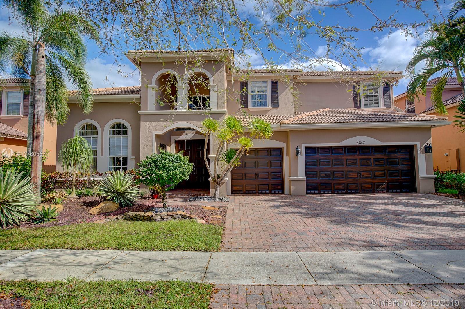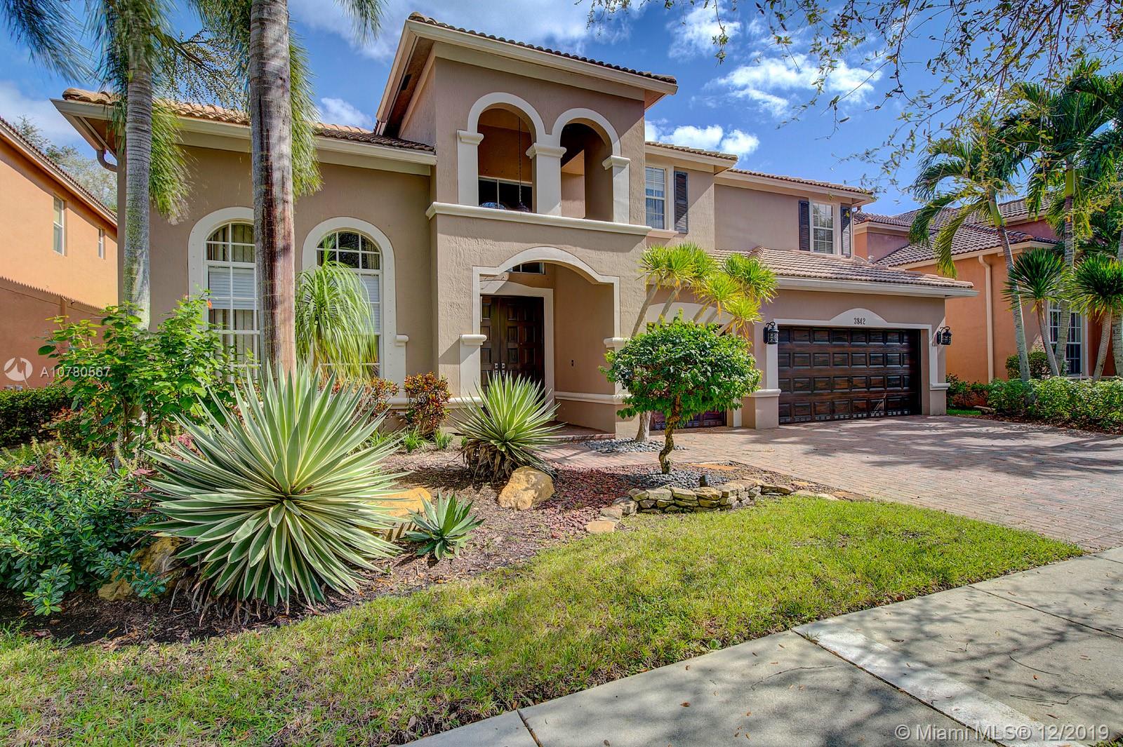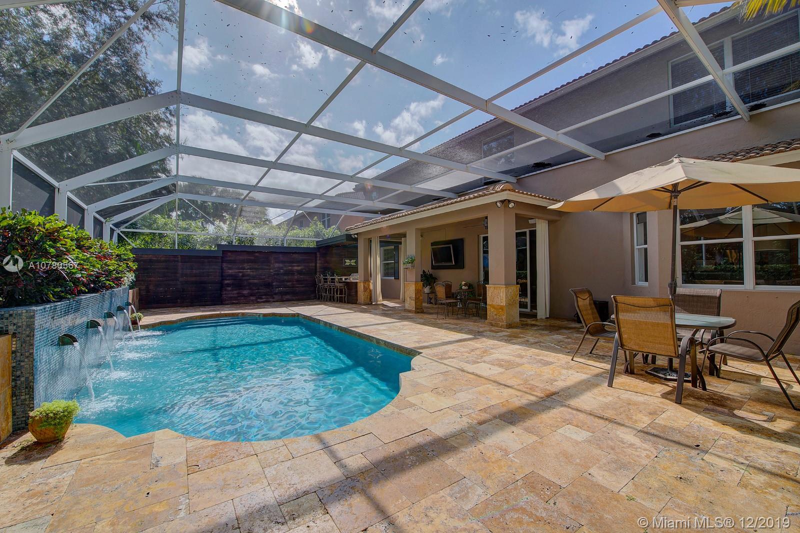 Come step inside this LUXURIOUS 2-story home located in the desirable Isles at Weston community! Immaculate condition! Gourmet kitchen with Italian-style 42" cabinetry & granite counter tops overlook the large, inviting family room & relaxing pool area. Generous living space consisting of 5 large bedrooms 5 baths ( First floor in-law suite and full bathroom), great bonus den, large upstairs study with 2 built in desks & oversized closets that could easily be a 6th bedroom. Private and spacious master bedroom suite, complete with 2 large walk-in closets & sitting area. Resort-style feels as you step outside to the screened in pool+waterfall & patio complete w/ summer kitchen! Custom double wrought iron staircase leading to second floor. Gated community. A+ schools.