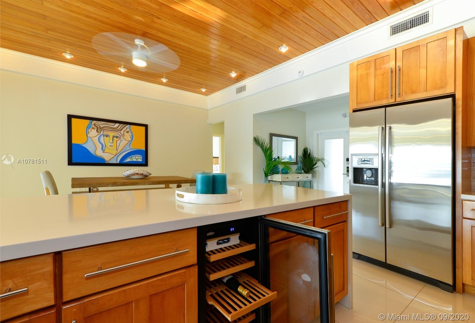 Turn key open bay home in exclusive gated community. Be greeted with high wood ceilings and a wide view of the water. Modern home features an open floor plan with impact windows & doors, porcelain floors, quartz countertops, Bosch appliances including gas cooktop & 2 master en-suites to enjoy direct views to the water. Enclosed garage with private bath being used as the 4th bedroom. Waterfront living with a teak deck able to fit 2 boats, Dock Lift up to 10,000 lbs, reconditioned seawall, pool & gazebo perfect for entertaining. Central location just 10 minutes to Design District, 15 min to Sobe, 15 min to Miami International Airport & 10 min to the ocean. Home has short term license from the city to do Airbnb.