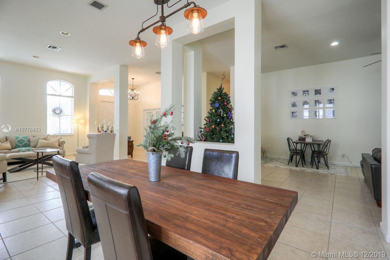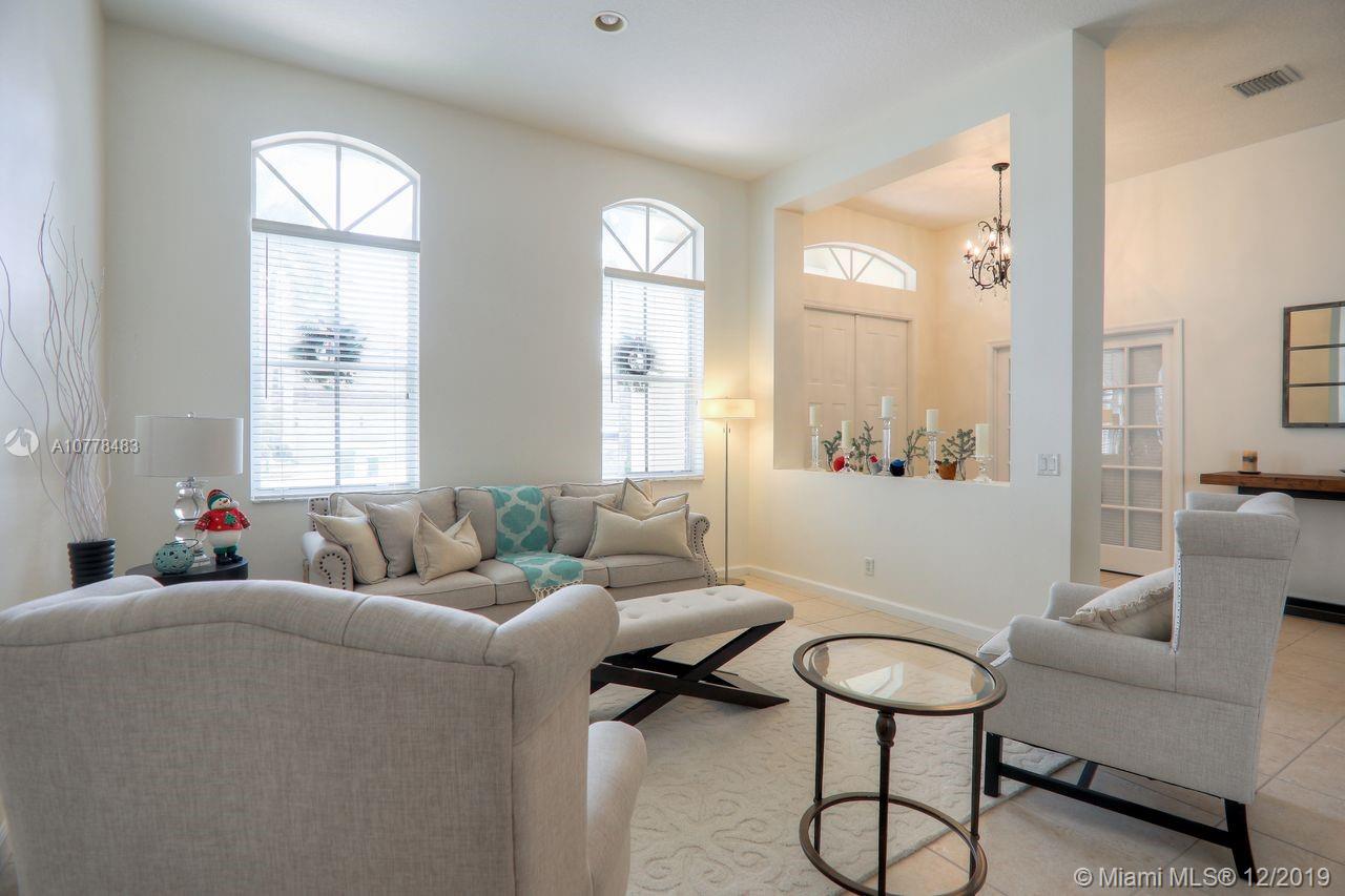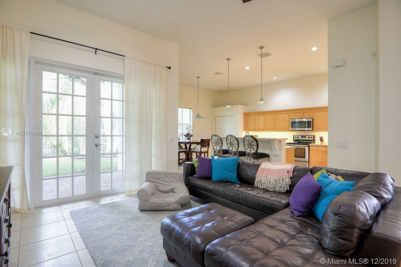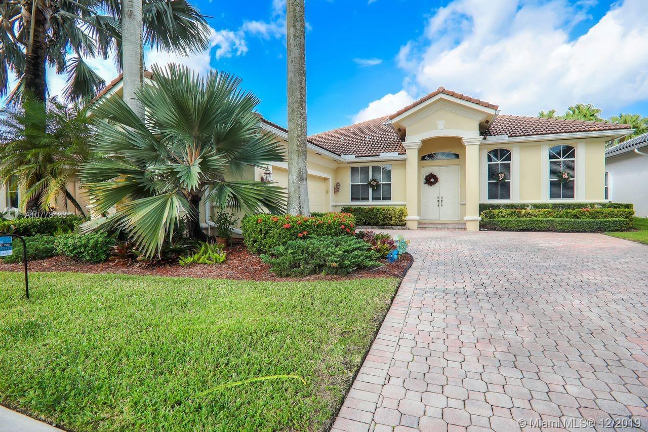 Popular Dove model tucked on a royal palm tree lined street, walking distance to the Hunters Pointe Community park. Great curb appeal with side entry garage and paver driveway. Enjoy soaring ceilings and neutral tones. Fully fenced yard with overhang and paver patio. Triple french doors lead to yard. Renovated baths with quartz countertops and decorator light fixtures and hardware. Stainless Steel appliances in spacious kitchen. new granite and under-mount sink. All wood floors in bedrooms. 4th bedroom (with closet) being used as a den.