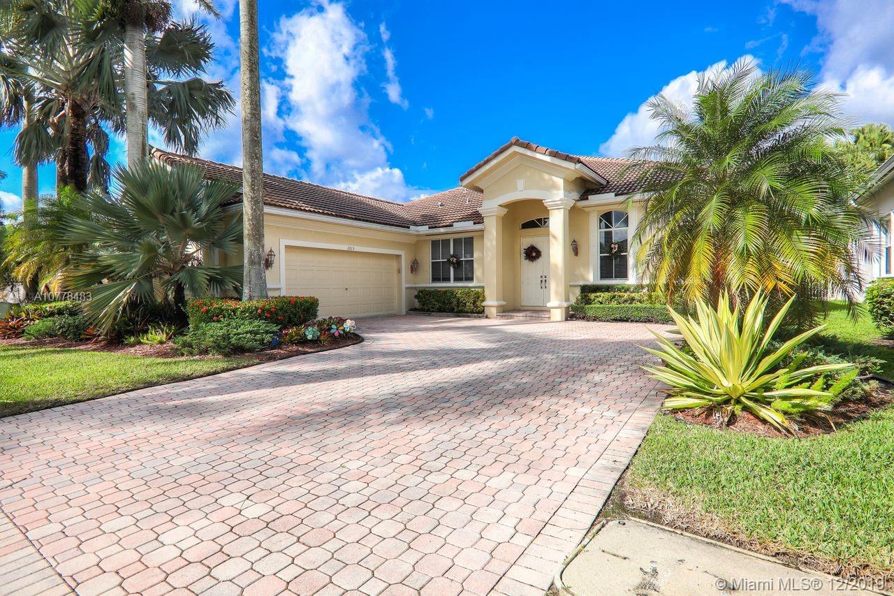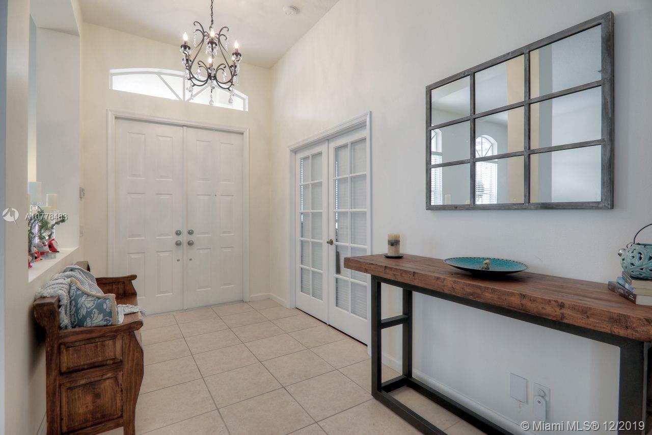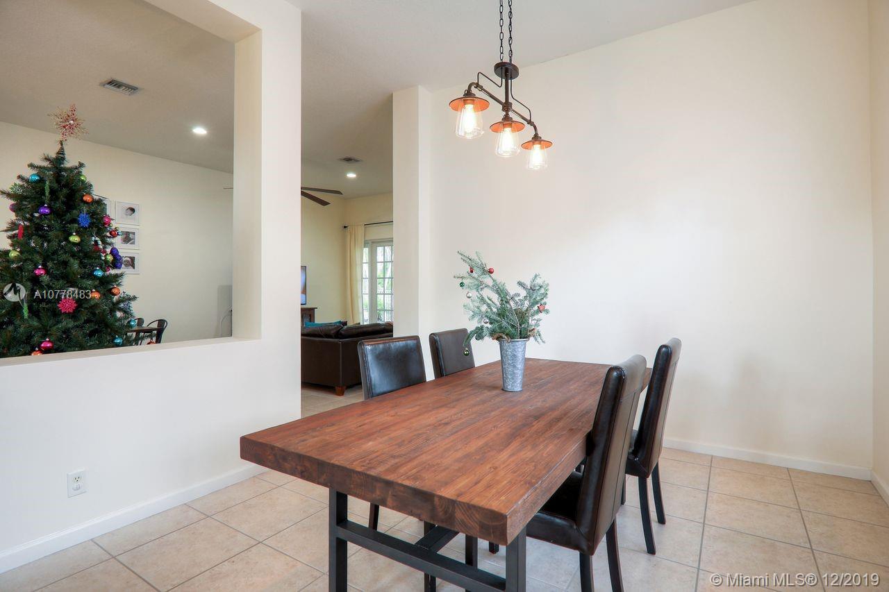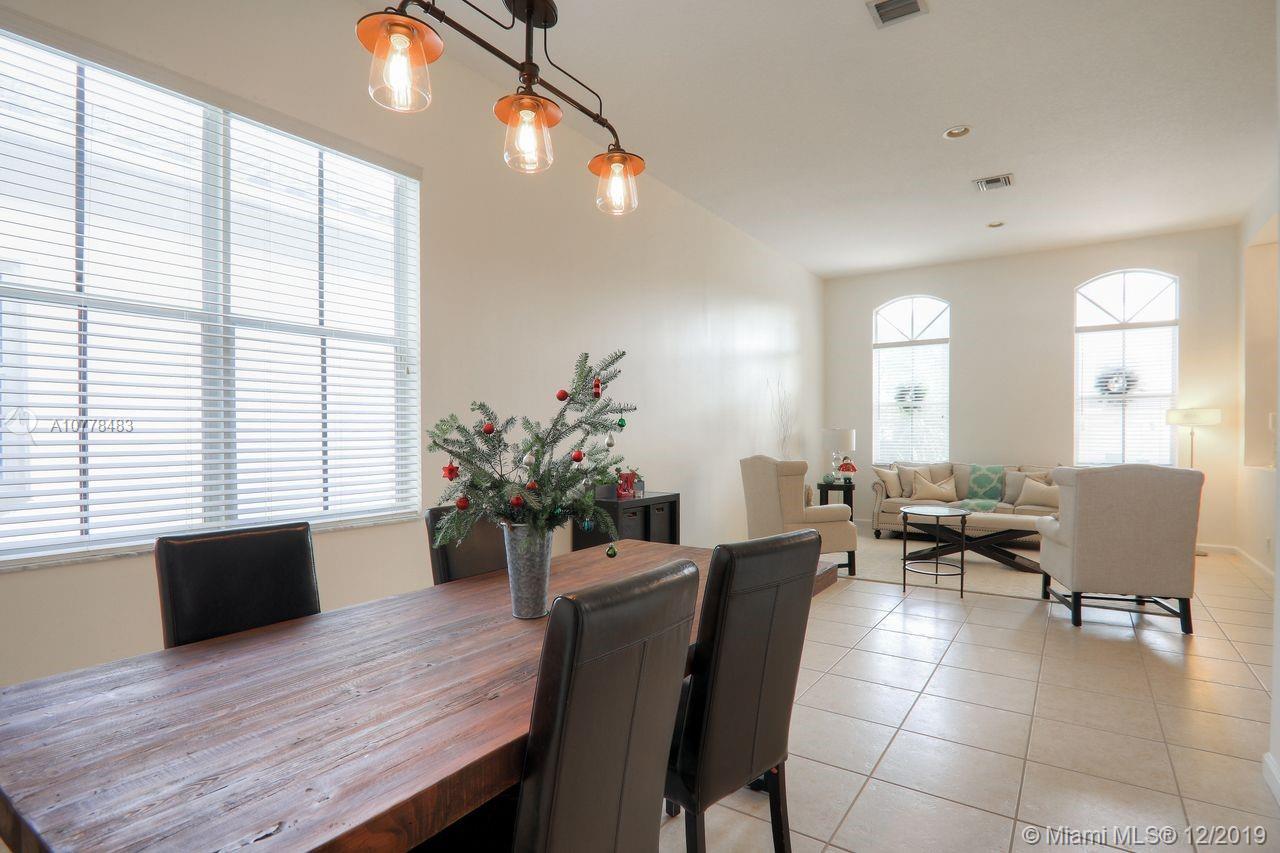 Popular Dove model tucked on a royal palm tree lined street, walking distance to the Hunters Pointe Community park. Great curb appeal with side entry garage and paver driveway. Enjoy soaring ceilings and neutral tones. Fully fenced yard with overhang and paver patio. Triple french doors lead to yard. Renovated baths with quartz countertops and decorator light fixtures and hardware. Stainless Steel appliances in spacious kitchen. new granite and under-mount sink. All wood floors in bedrooms. 4th bedroom (with closet) being used as a den.