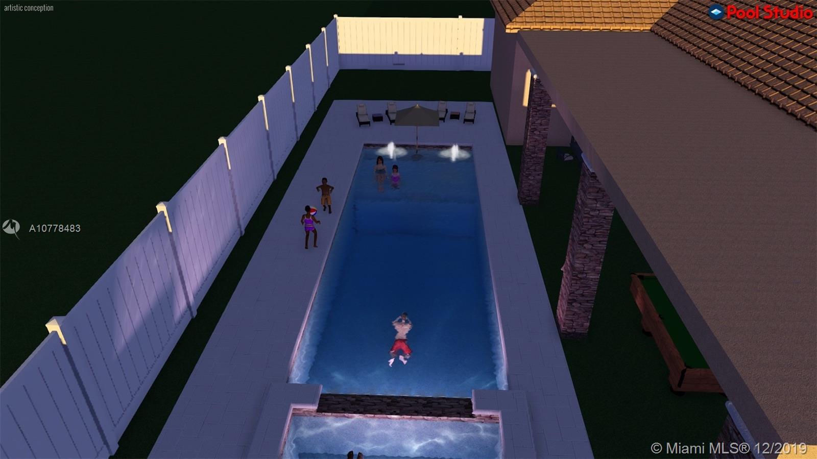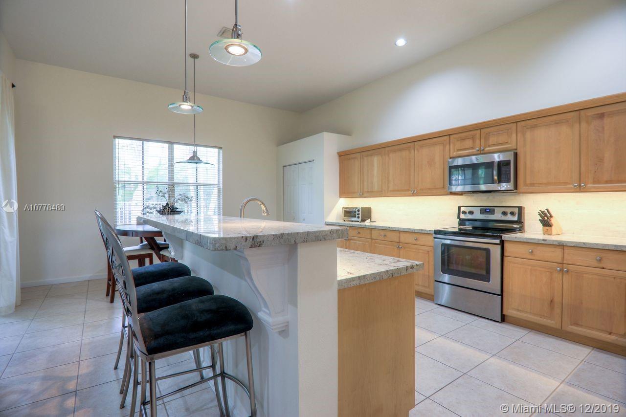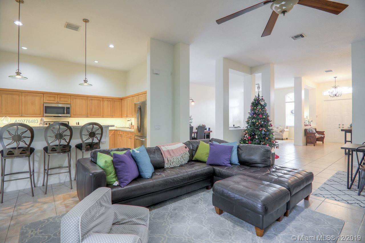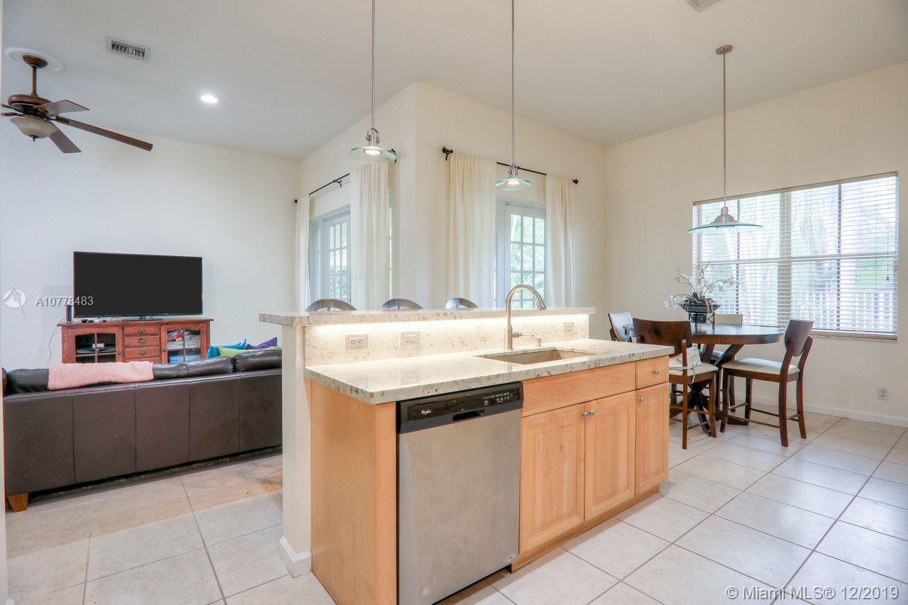 Popular Dove model tucked on a royal palm tree lined street, walking distance to the Hunters Pointe Community park. Great curb appeal with side entry garage and paver driveway. Enjoy soaring ceilings and neutral tones. Fully fenced yard with overhang and paver patio. Triple french doors lead to yard. Renovated baths with quartz countertops and decorator light fixtures and hardware. Stainless Steel appliances in spacious kitchen. new granite and under-mount sink. All wood floors in bedrooms. 4th bedroom (with closet) being used as a den.