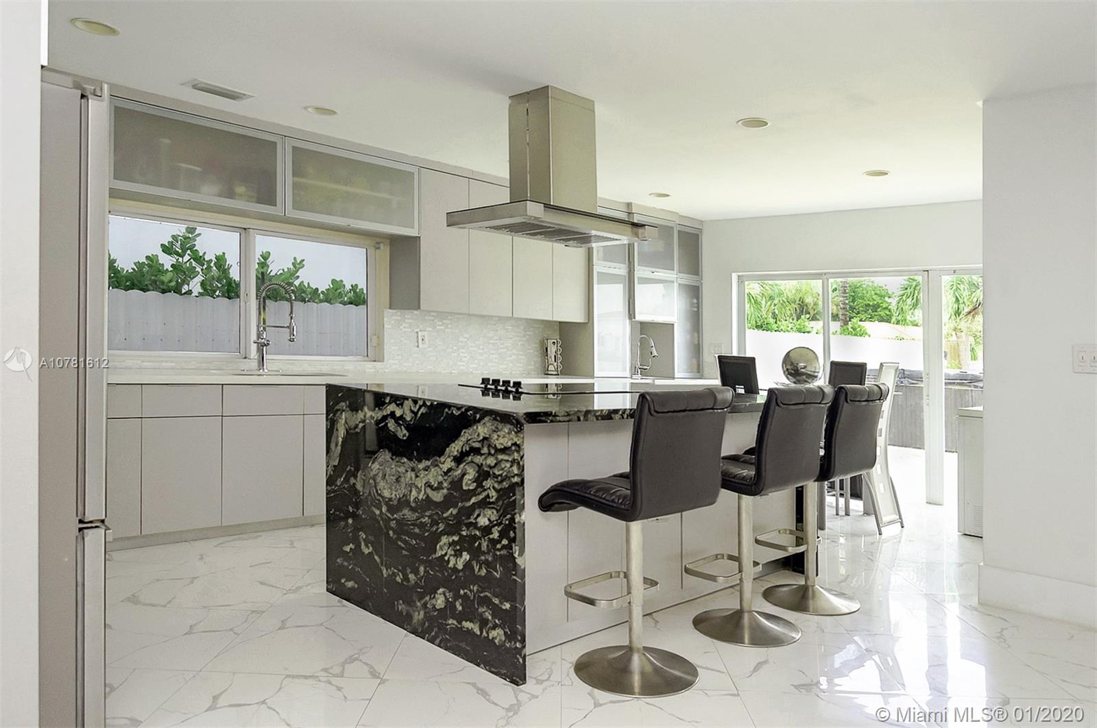An excellent opportunity in a private community of Keystone Islands. This waterfront gem is situated on a 10,125 sqft lot featuring 2 stories. The Home opens to an oversized large living area with an open-plan, a spacious sitting and dining area overlooking the water. A master suite on the ground level with a spacious walk-in closet and a master bathroom. A guest bedroom, for ultimate privacy and a gorgeous updated shower/bathroom. Another two more large bedrooms upstairs. The house opens to an outdoor area featuring 75’ waterfront, pool, and is located minutes to Biscayne Bay. The home has been tastefully updated: marble flooring throughout(wooden floors on 2nd level), stainless steel appliances in the kitchen with granite countertops.