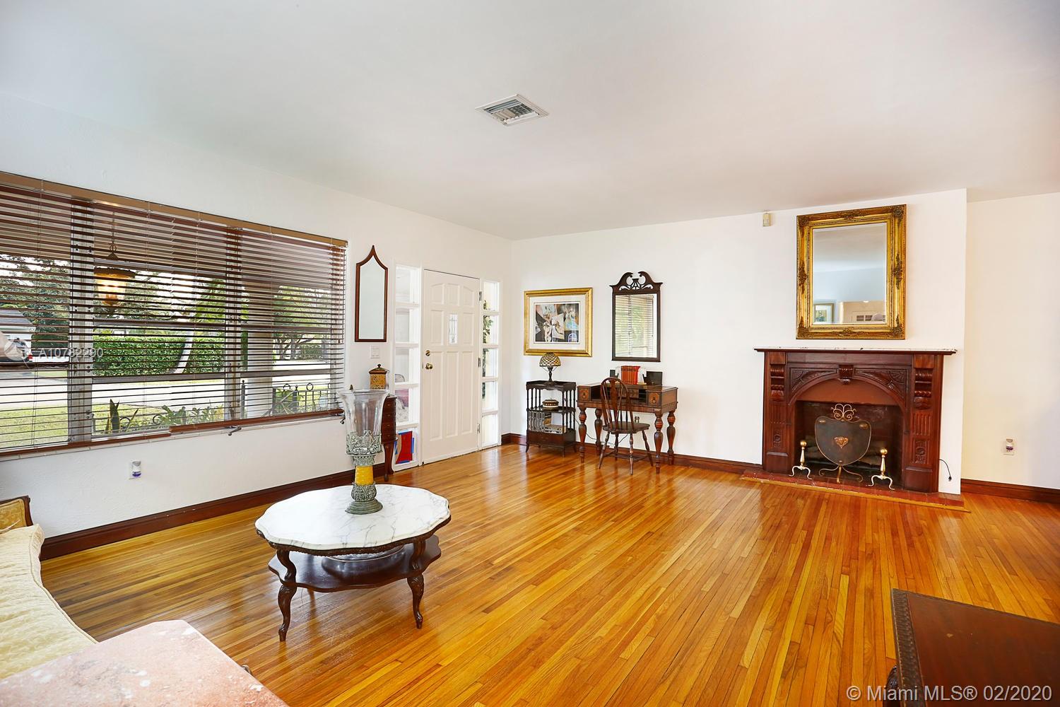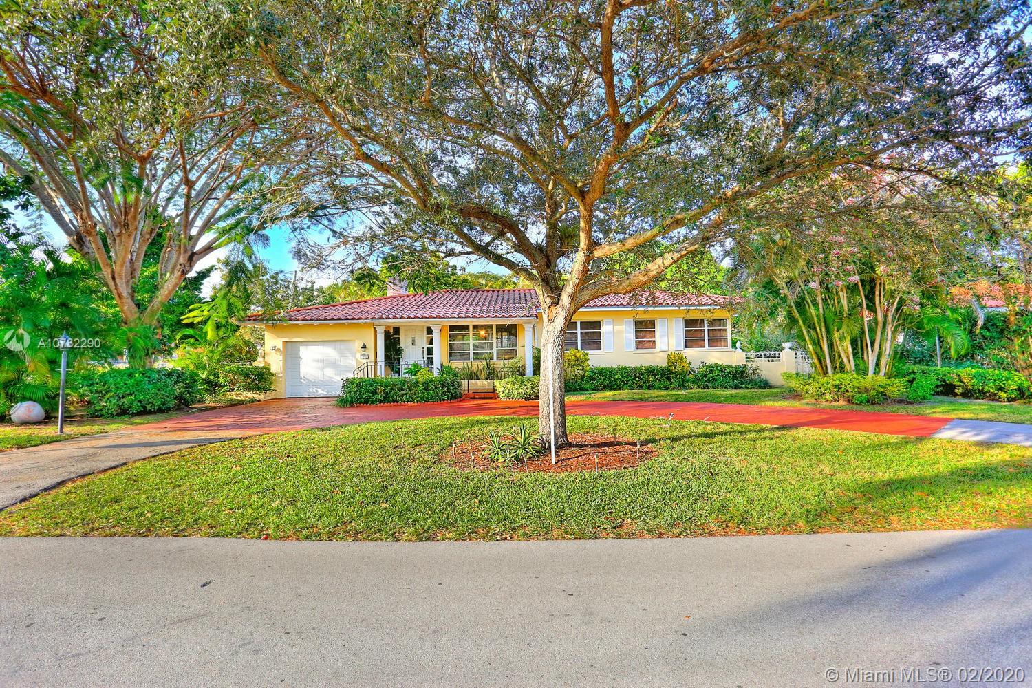 Superb location on a pretty tree-lined street near UM. Situated on a walled 10,500 sf corner lot, this classic Coral Gables residence features 3 bedrooms, 2 baths, a 1-car garage & circular driveway for ample parking. Elegant formal areas are finished with beautiful hardwood floors and include a fireplace, cozy library & Florida room. A large, private backyard is ideal for entertaining and family barbecues with plenty of room for kids and dogs to run & play. Walk to great area schools, including David Fairchild, nearby parks and enjoy convenient access to South Miami, downtown Coral Gables, shopping & metro rail.