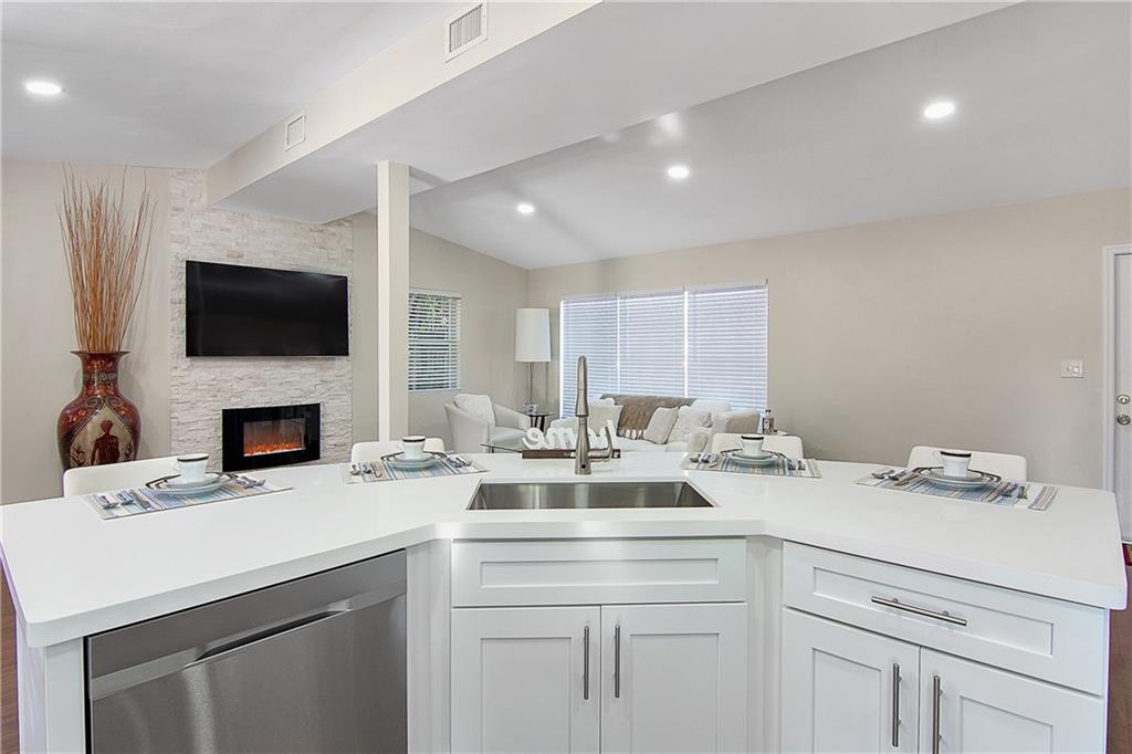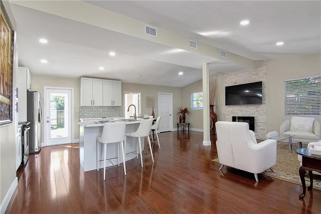 Looking for a brand new everything , move in ready, luxury feel home? Well this is it! This 3/3 home features, a brand new Ac, tank less water heater, recessed dimmable lights throughout, custom kitchen cabinets and back splash with quartz counter top, two master bedrooms, a large yard and a newly diamond brite resurfaced pool! A beautiful island for dinning enjoyment, and a custom stone wall! Major Bonus for new buyer, the 65 in' smart tv and digital fire place stays with the house!