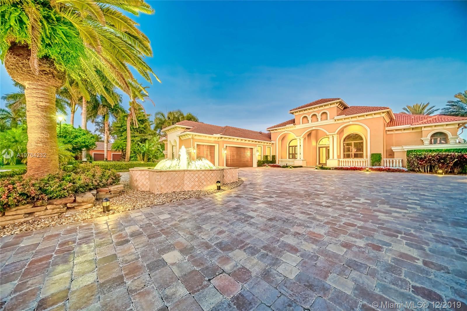 The Jewel of Stonebrook Estates! Significant investment has been made into this property unlike any other at this price point in SW Broward. Set on the only waterfront point lot in the community. Live the life around a custom infinity-edge pool w/hot tub & waterfall, tumbled marble pool decking, putting green, gazebo w/full summer kitchen & TV - all framed by lush landscaping overlooking the lake. 75KW full-hse diesel generator and surveillance system. 1-story with volume ceilings with water views on 3 sides of the property. Other features include LED lights, private guest suite w/separate entrance, 3-car garage, grand entry fountain, den/media room, SS kitchen appliances, central vacuum system & more. Entertain your family and friends in an oasis of beauty, sophistication and relaxation.