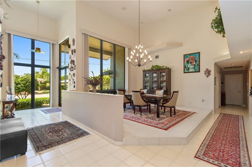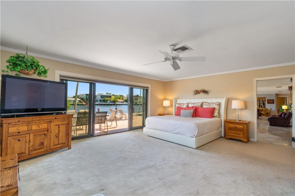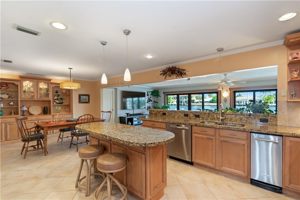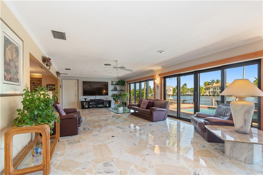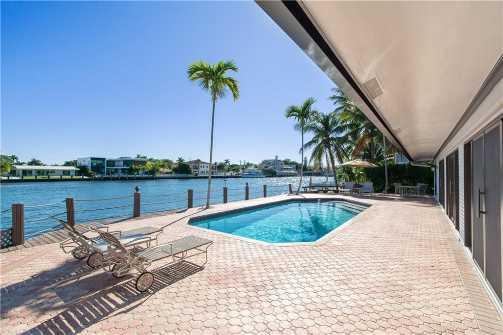 Stunning views from this beautiful 6 BR/4 BA home directly on the Intracoastal. 5,884 SF under air. 12,567 SF lot. 110' on the water. Watch the yachts pass by from a spacious patio with pool, BBQ area, newer dock & seawall. Dramatic 2 story entry foyer & adjacent dining room with 20' ceilings. Grand entertaining space includes large living & family rooms with wood-burning fireplace & custom bar. An open eat-in kitchen with Intracoastal views has granite counters, top-of-the line appliances, office area, center island & a huge butler's pantry. Master suite has 2 walk-in closets, double vanities, jetted tub & separate shower. Newer AC system, separate laundry room, hurricane impact windows and oversized 2CG make this a perfect family home in a great neighborhood!