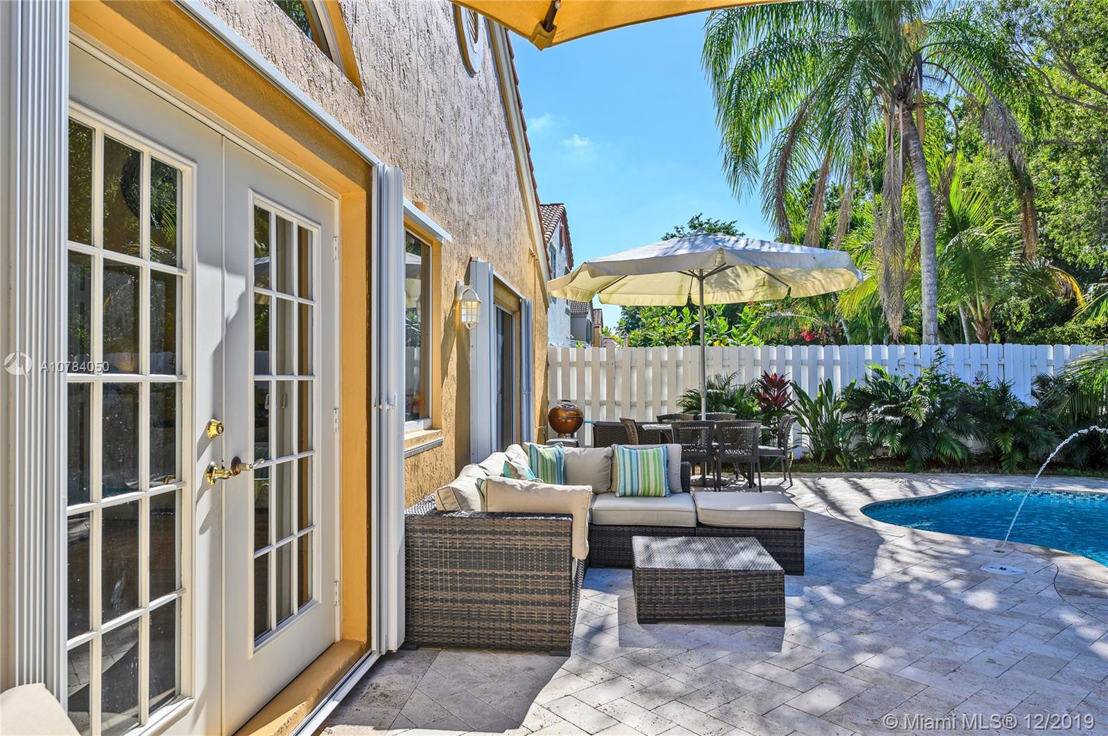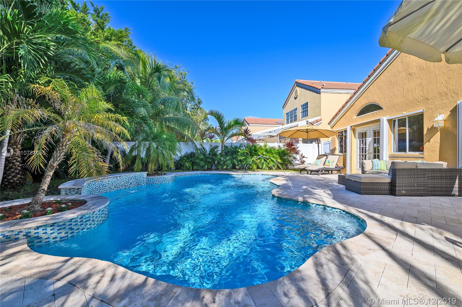 *Unique home in the heart of Weston* Stunning rare find, split bedroom plan, high vaulted ceilings, *Bright and open* Spectacular free form salt water pool, with lovely waterfalls & beach area. Pool with special lighting system, smart home controlled. Elegant travertine marble around pool and patio. Peaceful tropical gardens surrounds the fenced yard. Bedrooms are very spacious. Second bedroom access an atrium. Master bedroom overlooks the beautiful pool and garden. Lovely kitchen with breakfast area, granite countertops and top of the line Kitchenaid stainless steel appliances *French doors* Plantation shutters, crown molding *Accordion shutters* New Roof installed 2011. Gated community. Walking distance to Weston Towncenter and Elementary School. Hurry, this amazing home will not last!