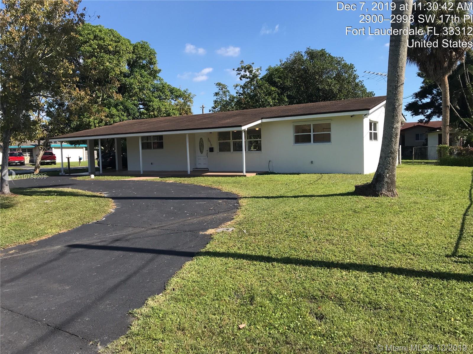 Lovely and large corner lot family home with both a half circle driveway and a carport. This property is located equidistant from I-95 and the Florida turnpike. Enjoy this 3 bedroom with a master bedroom split containing its own private bathroom. Kitchen is outfitted with new appliances and the showers have rainfall shower heads to drench yourself in relaxation. Take advantage of the gigantic back yard and concrete built storage shed. Your home is move in ready. Be sure to tap on the virtual tour link to get an up close and personal view of the homes interior.
