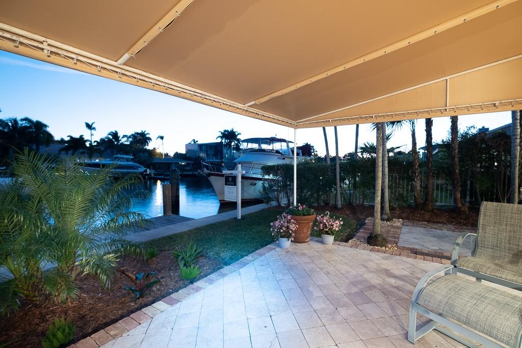 Lauderdale Harbors renovated 3 bedroom , 3 bath home on a 80 ' ocean access canal. The lot is 80'x110' and is the fourth home east of the intercoastal waterway. Attractive renovation with neutral finishes throughout the open floor plan. Spacious master with custom built-in closets, whirlpool bath and seperate shower. Galley style kitchen offers room for entertaining and dining. Split floor plan with bedroom off dining area converted to den. Guest bedroom has onsuite renovated bath. Bright cheerful home with maple hardwood flooring in the main living area and bedrooms. Waterfront views from master and living areas. Covered patio off livingroom and lovely open patio off dining area. Custom 17' floating dock for watersports enthusiasts. A 42' dock with dockage space for a 70' vessel.