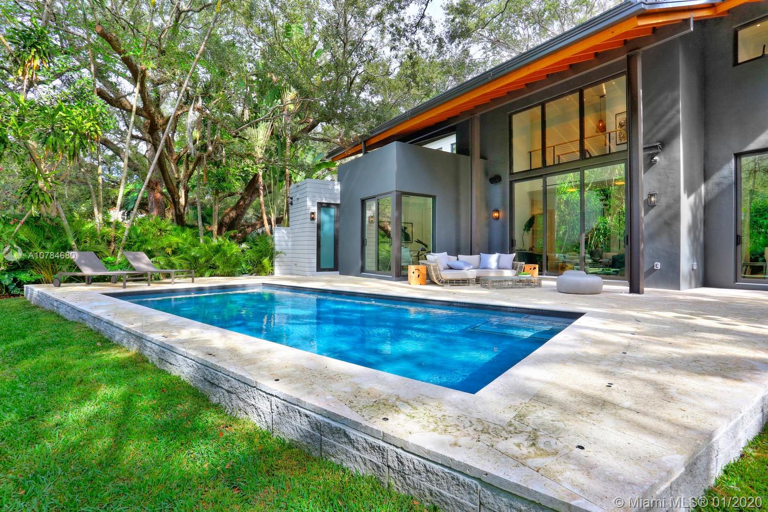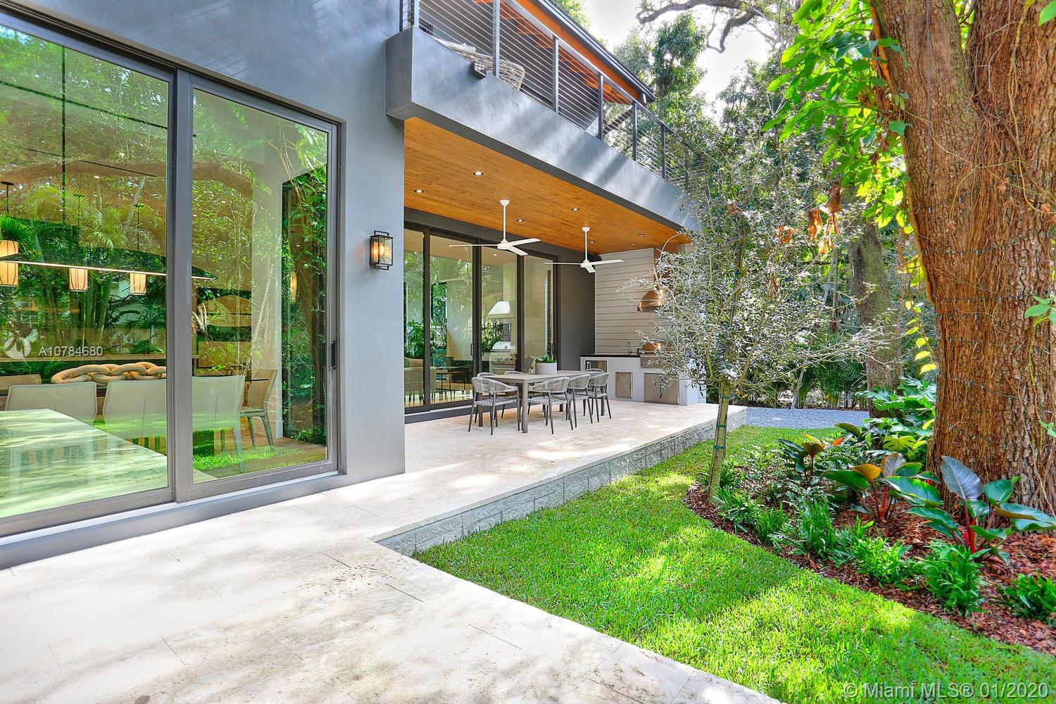 Spectacular architectural masterwork designed by the award-winning & published design teams of James Duncan Interiors and Jose Lobo’s SOW Design Studio. Gated, new construction (5158 SF) residence set behind a coral rock wall & surrounded by 10,836 ~ SF of ultra-private, lush tropical grounds canopied by majestic oaks. Light-filled living spaces offer double-height vaulted wood ceilings, dramatic skylights, Provenza oak wood flooring, 432 bottle wine cellar & Smart Home technologies throughout. Stunning custom kitchen features European style cabinetry, Thermador appliances & marble countertops. Walls of glass throughout create a seamless blending of interior & fabulous exterior spaces with covered terrace for lounging/dining + summer kitchen and pool overlooking the enchanting garden.