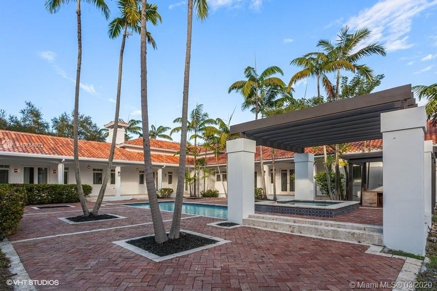 Experience one floor living at its finest. Set on a large gated corner lot in Pinecrest, this hacienda style estate is ready for its next owners. Once inside, be wowed by volume ceilings and a functional layout, set around a fabulous courtyard. This 2005 construction, recently refreshed by award winning NMR Design Group, boasts 6 bedrooms and 6.5 bathrooms. Expansive master bedroom features separate seating area and his & hers closets. Entertain with ease in the masterful great room, elegant dining room, and grand library. The central courtyard beckons for entertaining with its tranquil pool, spa, and inviting patios. One cabana bath and detached guest house with private access. Enjoy our walkthrough video: https://youtu.be/KqXZ4iSpGGQ