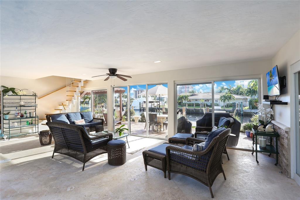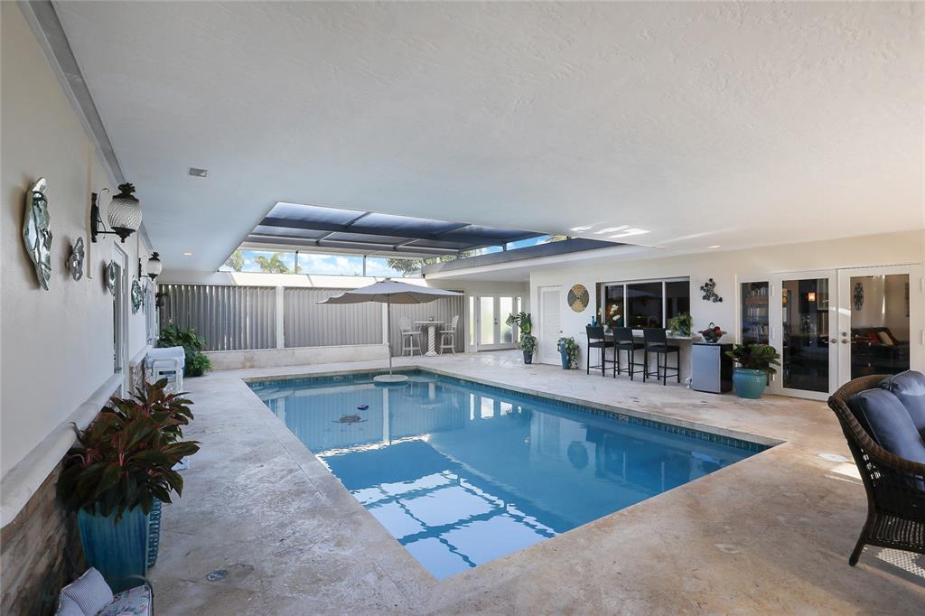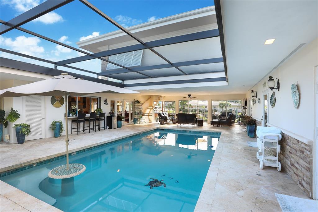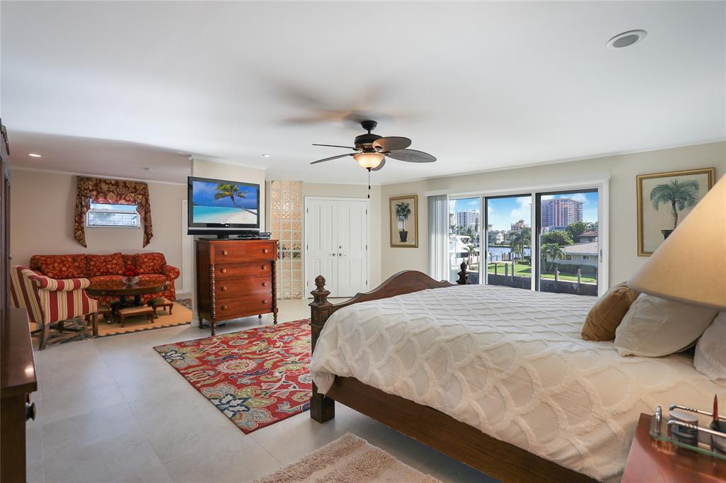 OWNER FINANCING AVAILABLE! PRICED UNDER MARKET! Beautiful courtyard home on 96 foot wide canal and views of the Intracoastal. 99 feet of waterfront, NO FIXED BRIDGES with new seawall, new dock with PVC decking. New Impact windows. Every room has been remodeled. Large upstairs Master Suite with sitting area and 2 dressing rooms each with its own sink and multi jet shower. All other bedrooms are downstairs with one having private bath. Each bedroom has its own doors opening to the newly refinished heated pool with new screening. Kitchen has granite counters and all SS appliances. Italian porcelain tile throughout kitchen dining area and great room. All 3 new A/c's in the last 3 years. New washer and dryer. Roof 3 years old. Minutes to the new Pompano Beach Pier and Beachfront restaurants.