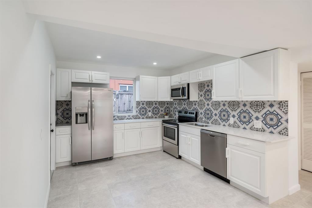 This fully remodeled pueblo style home is finished with designer touches throughout. Beginning at the open front courtyard step into the large open concept living-dining space. Your eyes are drawn to the spacious kitchen with beautiful modern quartz countertops and stainless appliances. Bathrooms are designed with clean lines and current color combinations. Recessed lighting throughout makes the space light and bright. The concrete patio area in the back feels like a private space to enjoy relaxing or entertaining outdoors. Located in the heart of it all! Close to the turnpike, I95, the beach, stadium, Hard Rock & more! Other features include a newer roof, new AC, Impact windows & doors and a 162 sq ft concrete storage room and fenced yard. Move in ready!